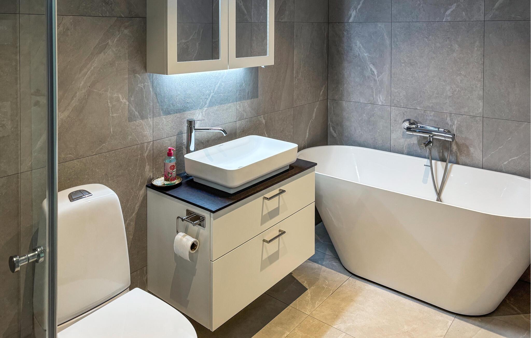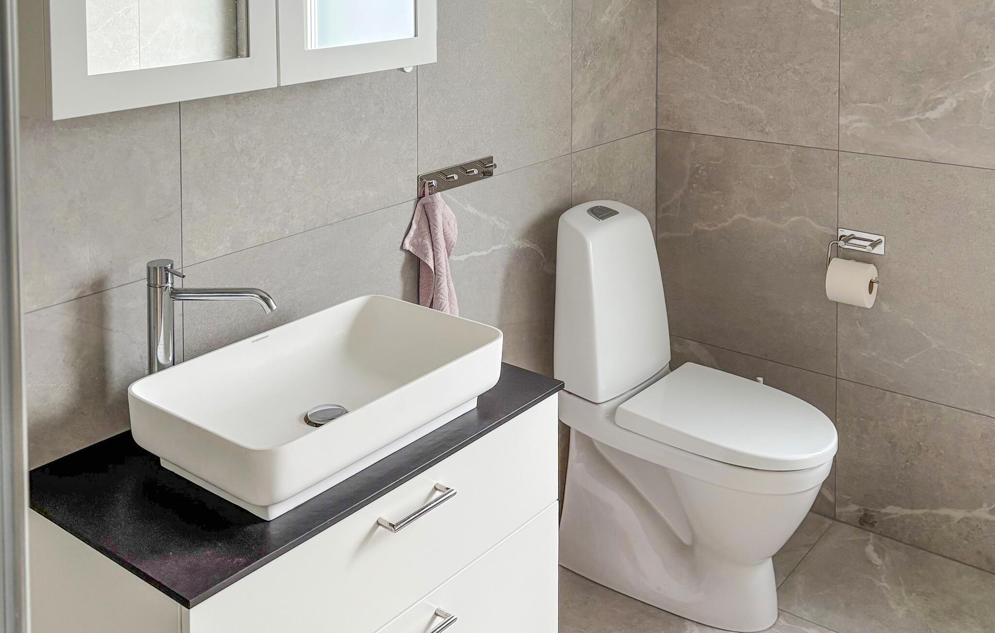 - WC. Varmt og koldt vand, Bruser og badekar