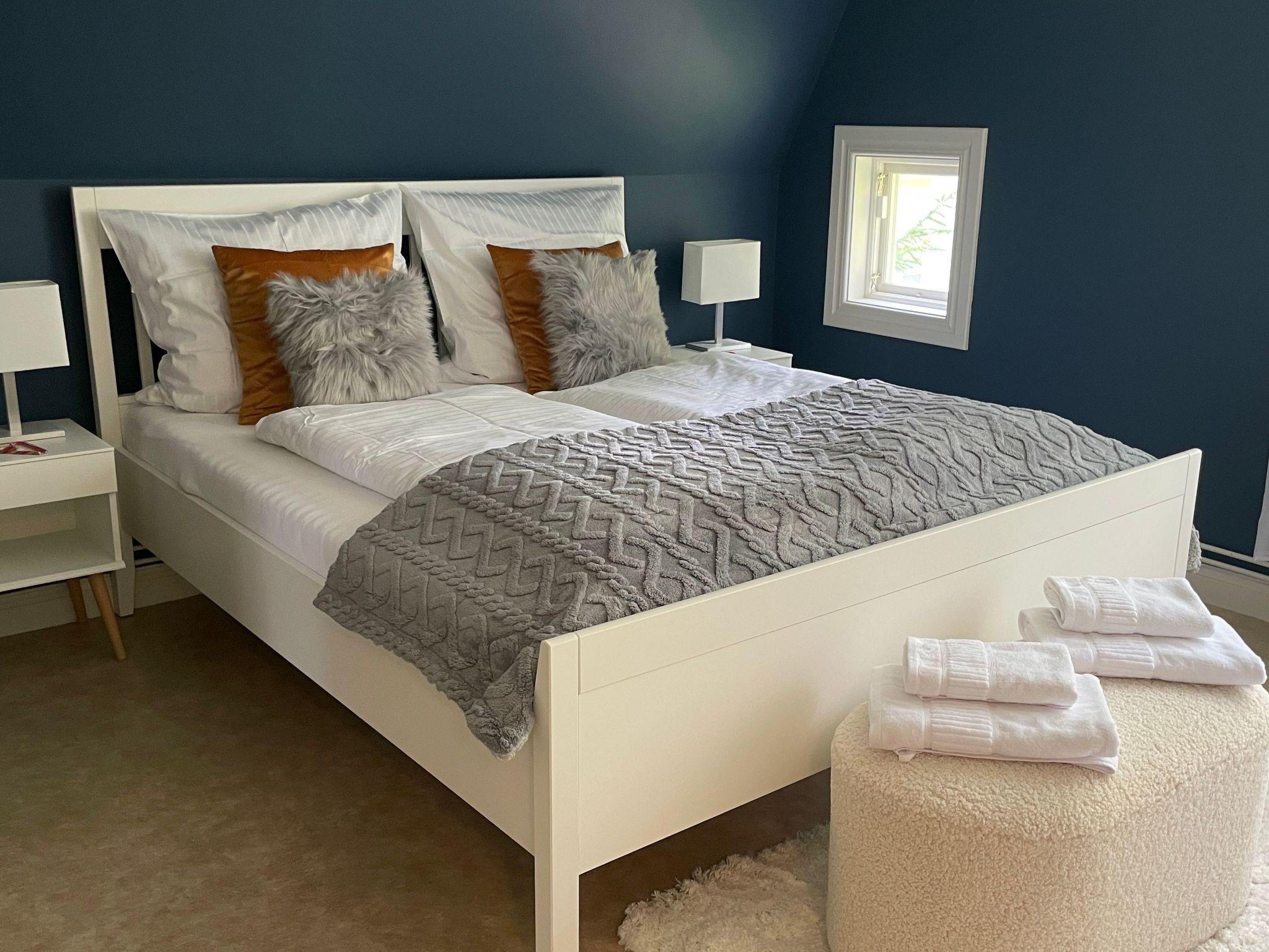 Inside the holiday home, you will find cosy and practical furnishings that will make your stay as pleasant as possible. Two bedrooms that can be darkened offer the peace and quiet you need after an eventful day. A modern kitchen with ceramic hob, coffee machine, dishwasher and kettle as well as a washing machine and tumble dryer are available for your exclusive use. The fireplace makes for cool evenings, while on warm days the partial air conditioning and fans ensure pleasant temperatures.