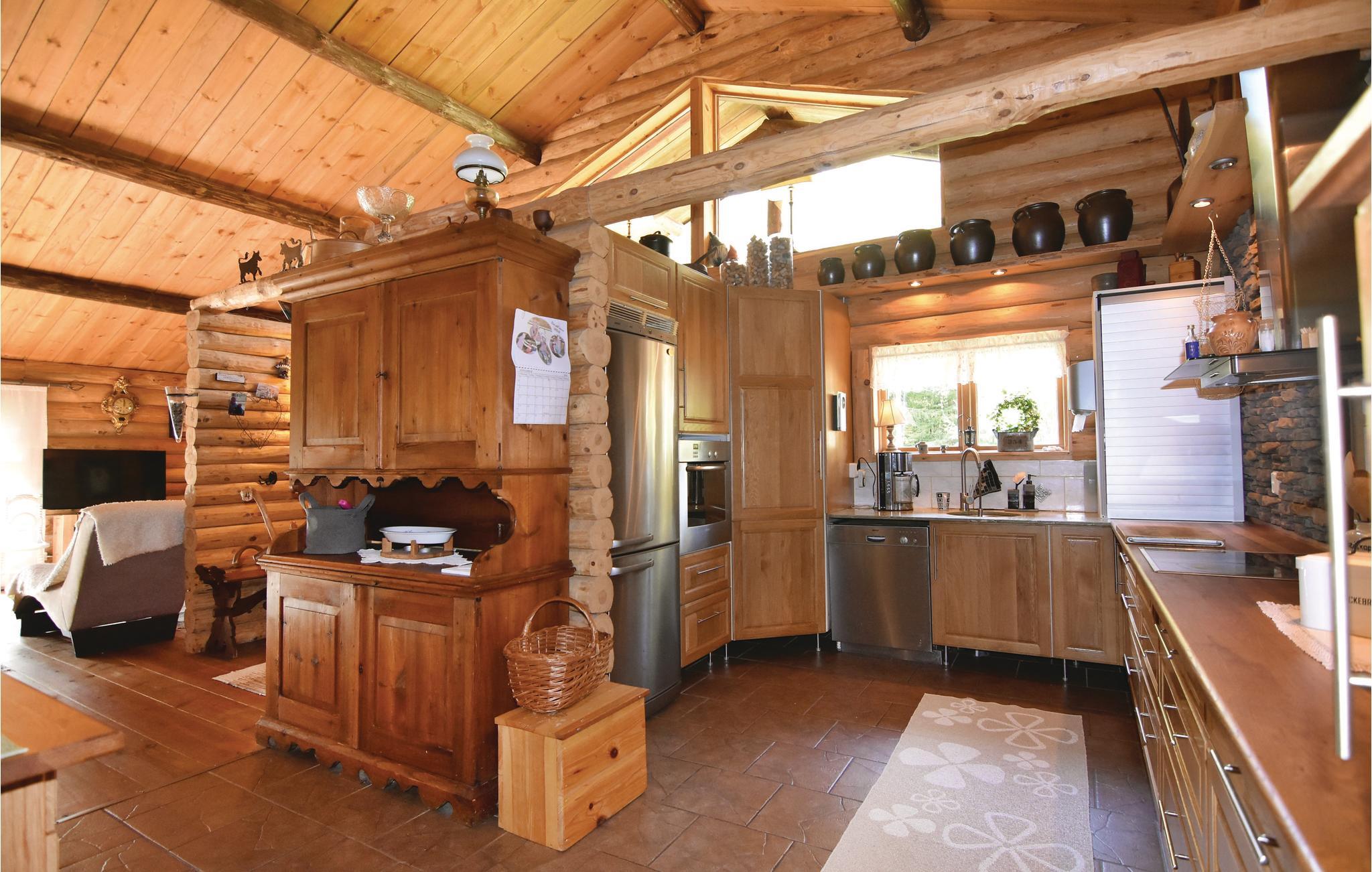 Huset imponerer med højt til loftet, og den åbne pejs og udestuen gør det meget hyggeligt. Den åbne terrasse vender ud mod skovkanten. Der er tre soveværelser og en hems til rådighed i feriehuset. Køkken og badeværelse har gode faciliteter.
