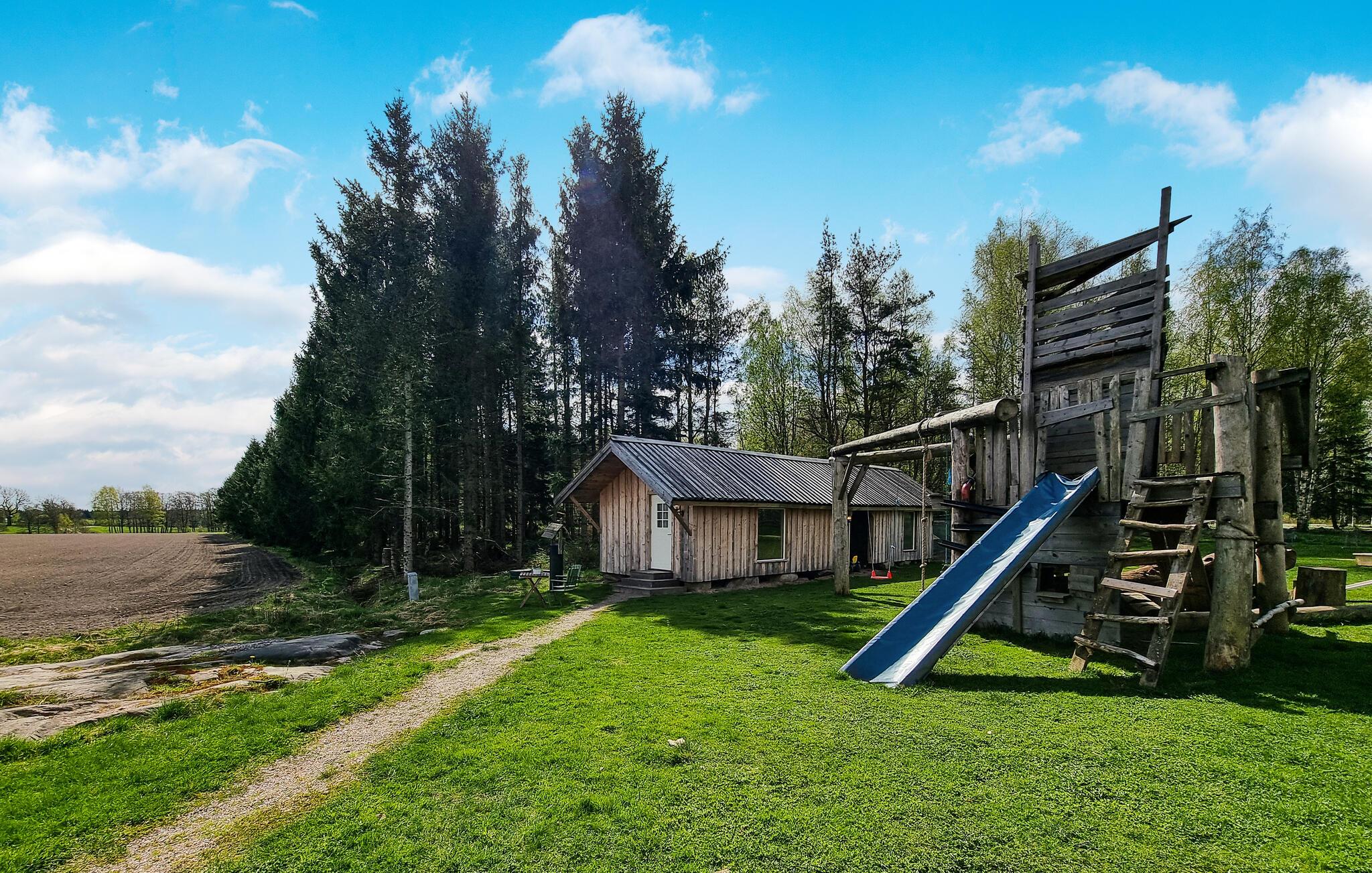 Dette hyggelige, kompakte hus, beliggende lige syd for Mellerud, byder på en afslappende pause i naturen. Begynd jeres dage med en afslappet morgenmad i den behagelige træstemning i jeres feriehus og tag derefter en kop kaffe ud i den friske luft. Her kan I nyde en vidunderlig udsigt over det omkringliggende landskab. I mellemtiden kan I lade børnene lege på den legeplads.
