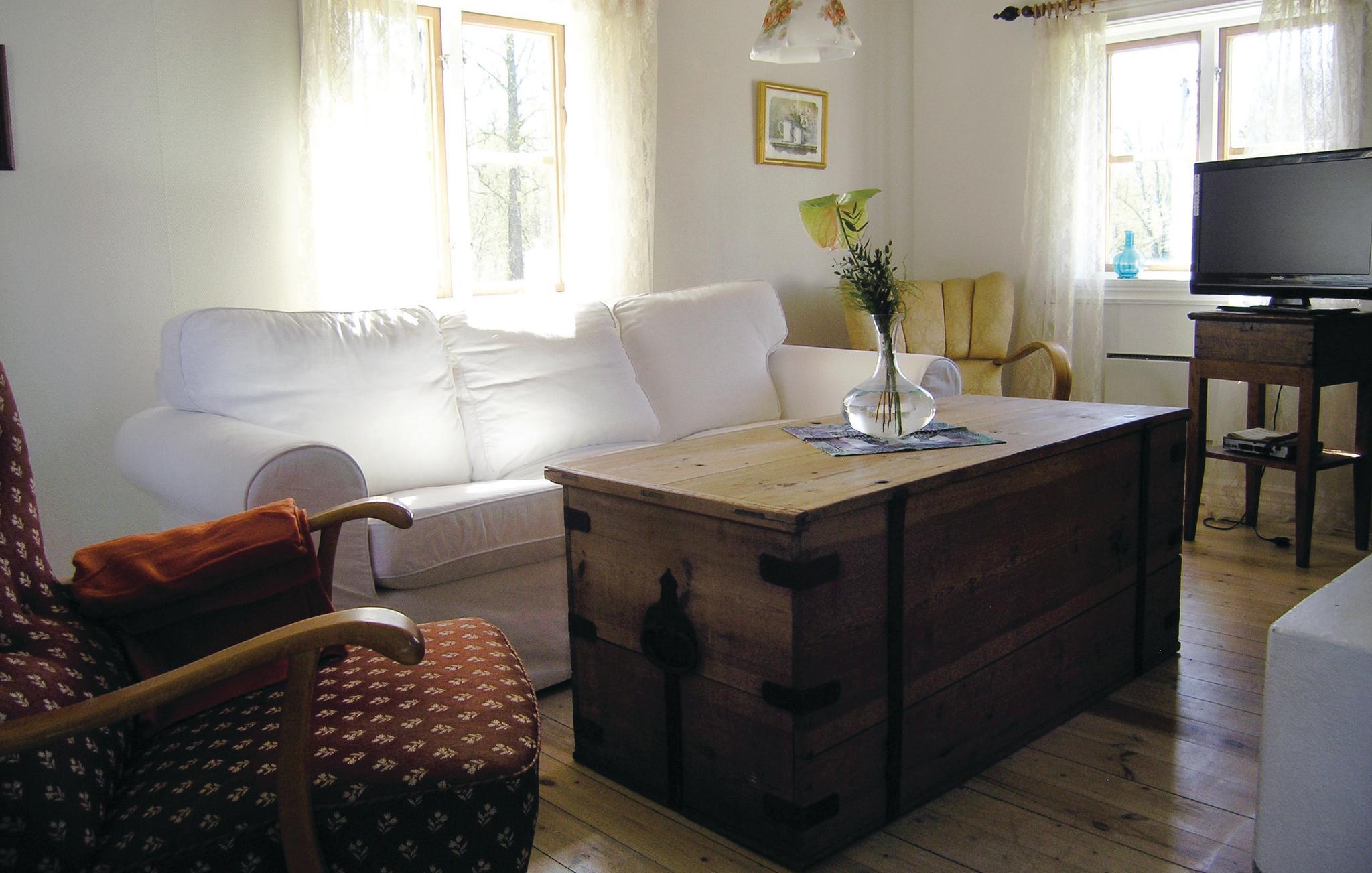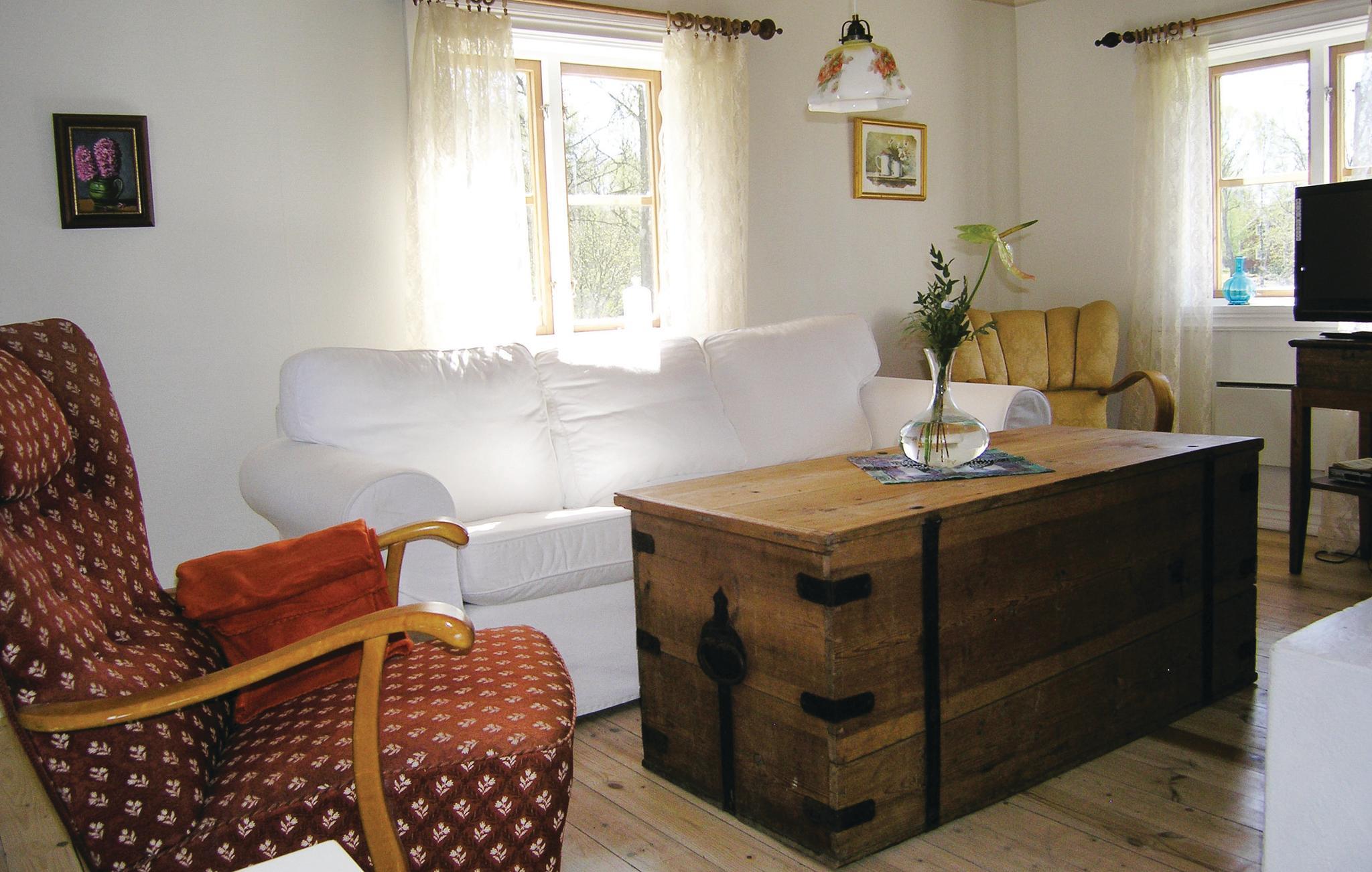 Charmerende feriehus i Mjöhult med adgang til båd. Dette typisk røde hus med hvide kanter ligger i et rigtigt Bulderby-miljø. Huset er hyggeligt indrettet med et lyst alrum og køkken i stueplan. Der er en smal trappe op til det hyggelige soveloft, med lavt til loftet. Her kan I nyde stilheden, gå afslappede ture og bare slappe af. Haven deles med endnu et hus, men ejerne er der ikke ret tit. Nær Angsjön hvor båden ligger, her kan I både bade og fiske. For de mere ivrige lystfiskere ligger søen Rusken ca. 7 km fra sommerhuset. I kan tage på udflugt til nationalparken "Store mosse" og besøge westernbyen High Chaparral. De mindste vil sikkert sætte pris på et besøg i Astrid Lindgrens värld. Butikker i Värnamo.