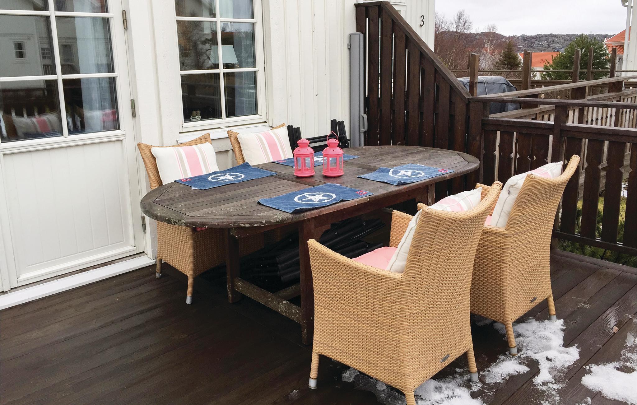 I sommeridylliske Mollösund finder I dette højtbeliggende og veludstyrede feriehus. Dette er en bolig, som er helt perfekt til en ferie på den svenske vestkyst - året rundt. Deltag i alle aktiviteterne der tilbydes i Skærgården i løbet af sommeren, eller prøv en rolig ferie om vinteren, hvor I kommer helt ned i gear, væk fra hverdagens stress og jag, og hvor I kan gå afslappende ture under åben himmel.