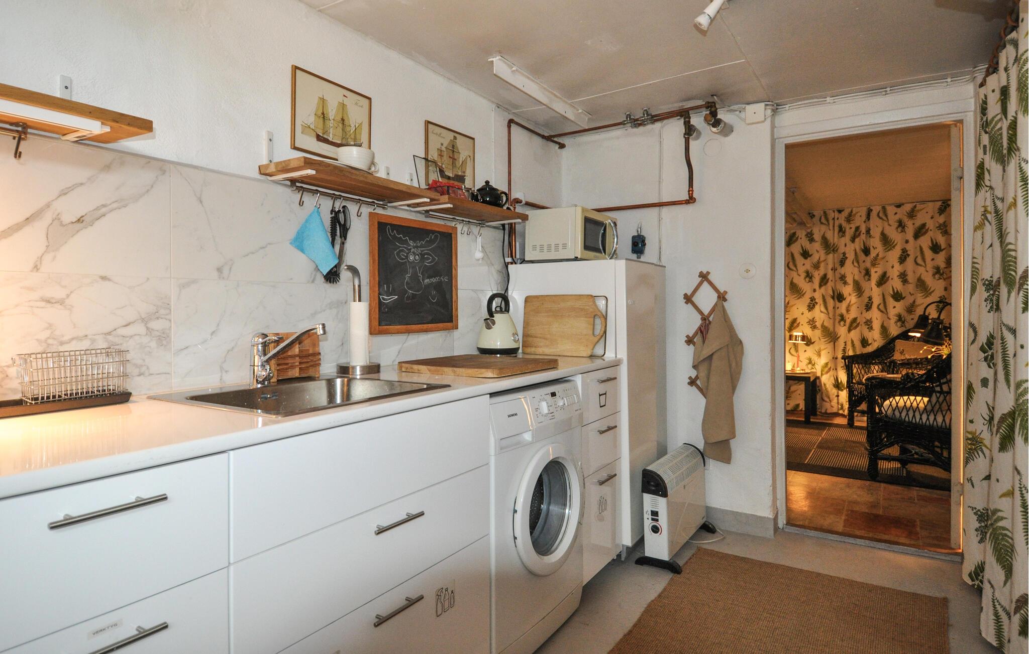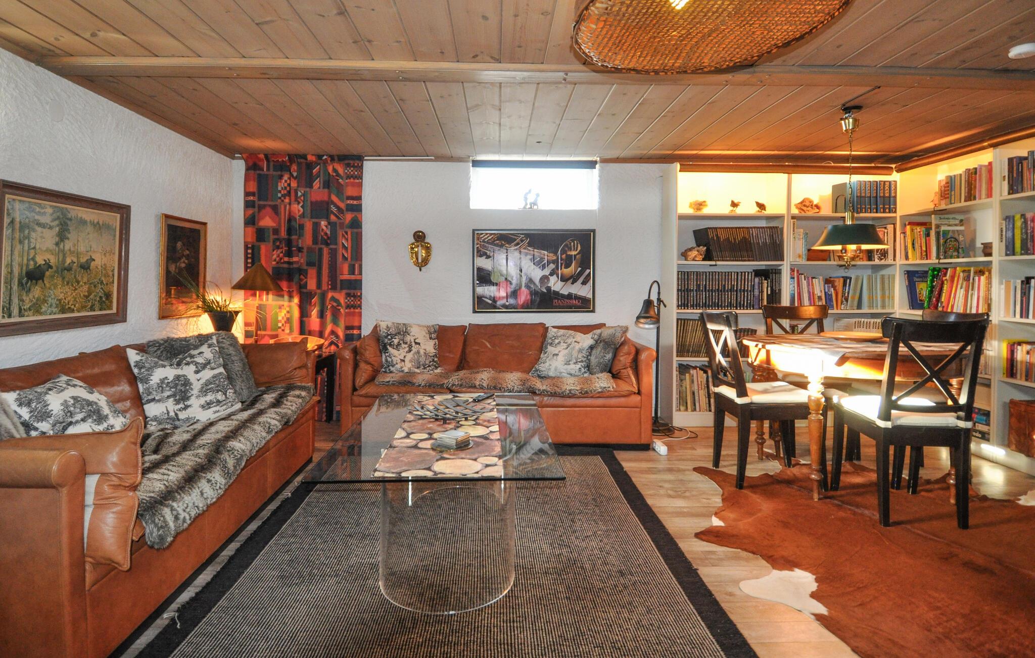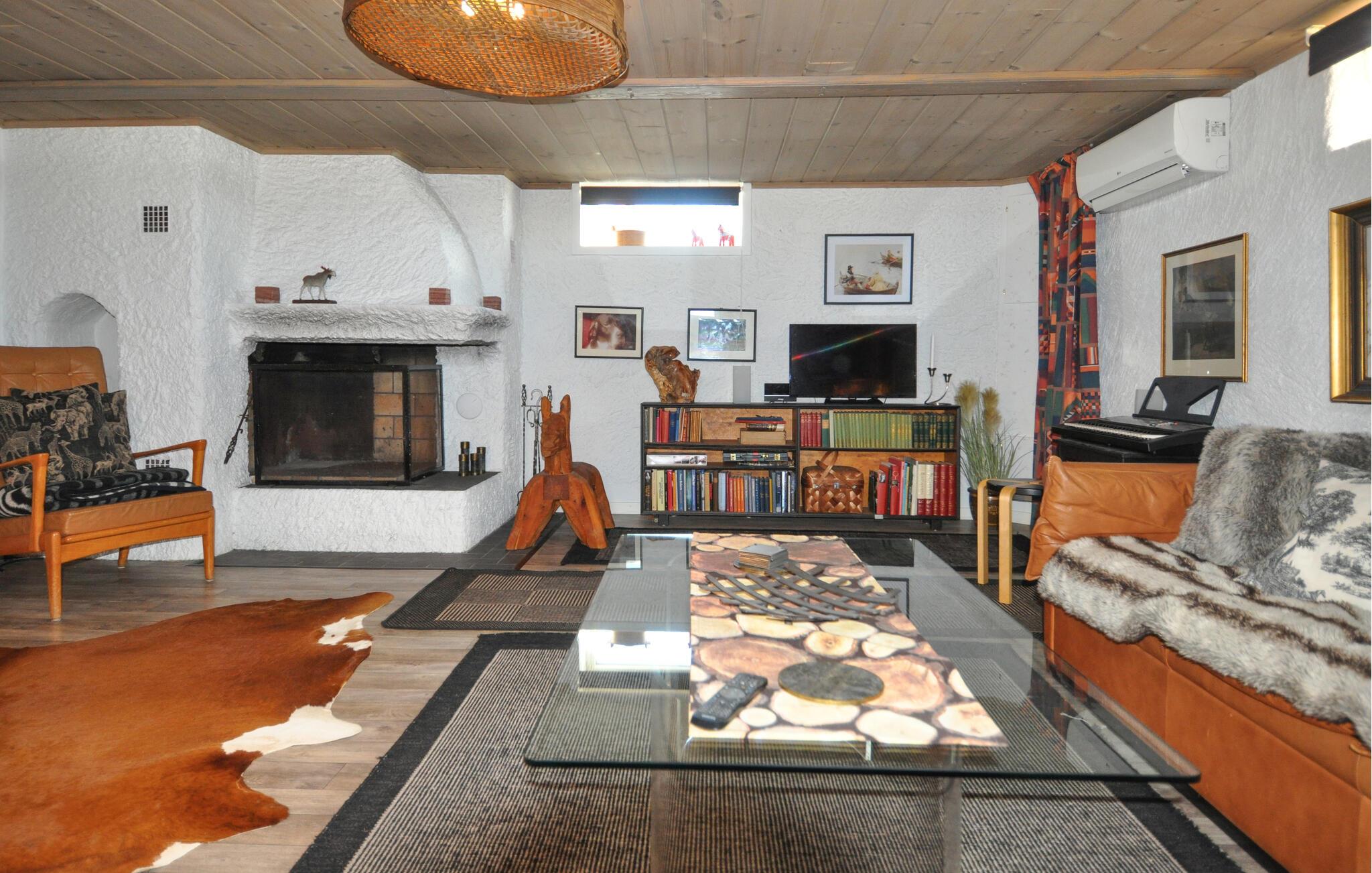 Velkommen til dette rummelige feriehus, hvor en afslappende pause venter jer. Tilbered jeres måltider sammen i det moderne og rummelige køkken-alrum og nyd den hyggelige atmosfære i det åbne opholdsområde. Tænd en ild i pejsen og nyd te i det hyggelige sofahjørne, der tilbyder en smuk udsigt over den omkringliggende natur. Forkæl jer selv med afslappende øjeblikke i saunaen og sociale spilleaftener eller træk jer tilbage til det hyggelige læseområde med en god bog.