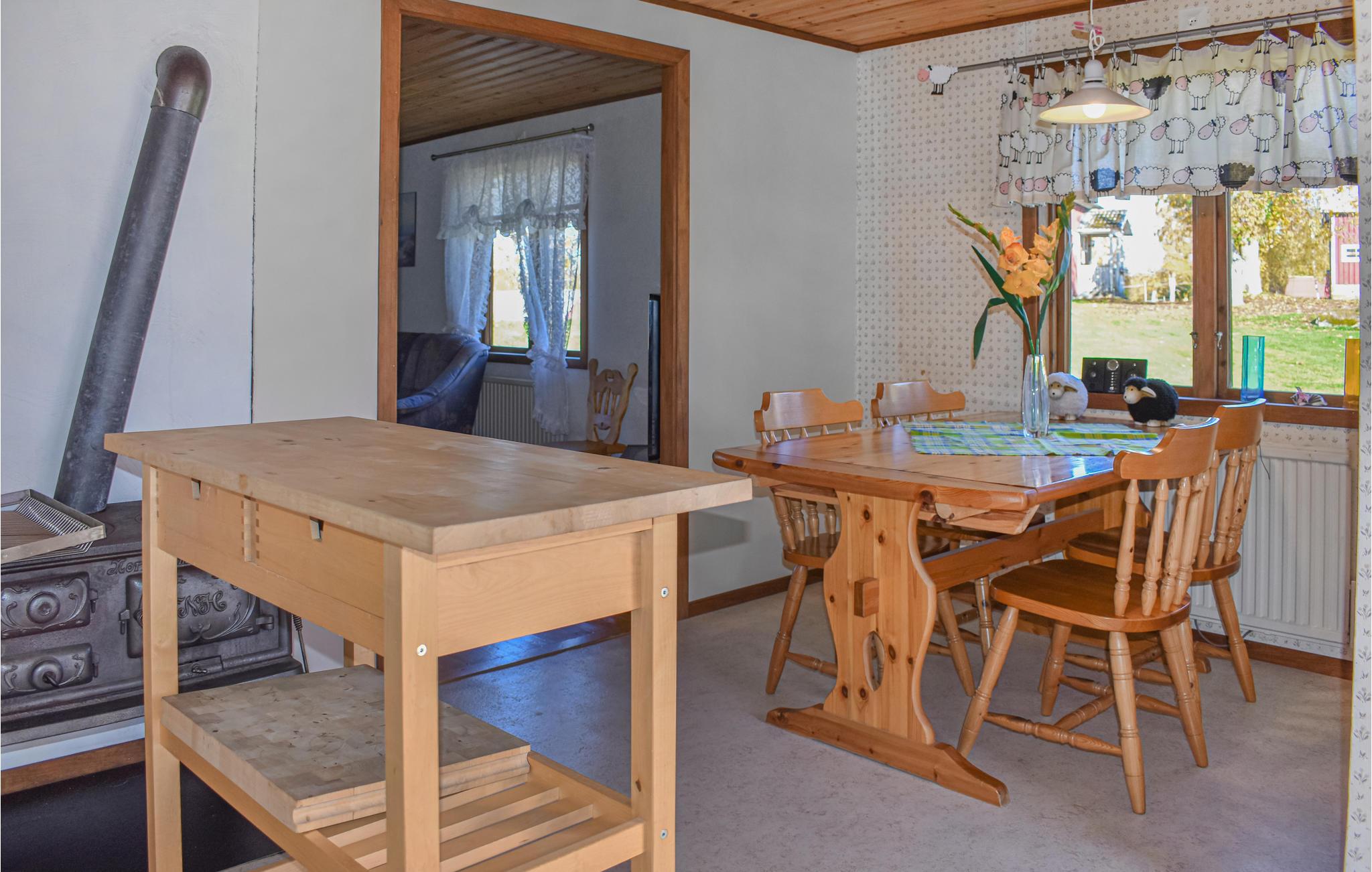 Så snart I træder ind i dette hus med hyggelige møbler, vil I føle jer godt tilpas. Her er alt klar til en afslappende ferie. Når pejsen i stuen spreder sin hyggelige varme efter en aktiv dag i naturen, kan I sammen finde jer godt til rette og gennemgå dagens oplevelser.