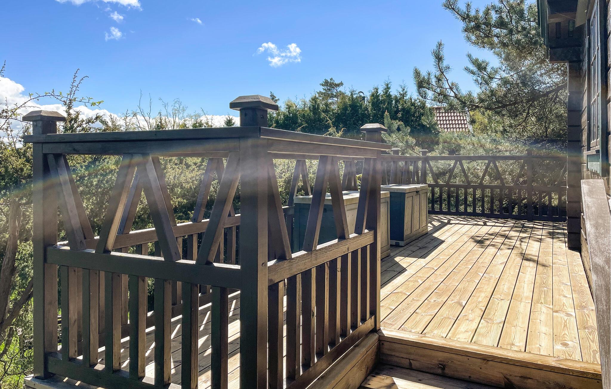 Nyd roen i dette karakterfulde træhus med udsigt over landskabet og nærhed til havet. Dette feriehus tilbyder ideelle betingelser for en afslappende ferie for op til to familier. Træd ind i det kærligt og hjemlige interiør med masser af træ og traditionelle møbler. Sæt jer ned i de komfortable møbler i opholdsstuen, eller saml måltiderne ved spisebordet med plads til alle og udsigt over den omkringliggende natur. Brug det traditionelle, åbne køkken til hyggelige madlavningsaftener. Der er også et lille tilflugtssted med skrivebord og sofa. Tilbring tid på den rummelige overdækkede terrasse. Læs en bog i skyggen, nyd jeres morgenkaffe med udsigt over træerne, og få et glimt af havets glitrende blå farve i horisonten. Den naturlige have inviterer jer til at blive hængende, og en lille sti fører ned gennem den frodige vegetation. Oplev de charmerende omgivelser nær Onsala med deres mangfoldige muligheder. Besøg de nærliggende strande, eller tag på ture til Göteborg eller Borås. Begge byer er inden for rækkevidde. Familier vil finde underholdning i Liseberg forlystelsespark eller Universeum Science Center. Det nærliggende hav er også ideelt til svømning.