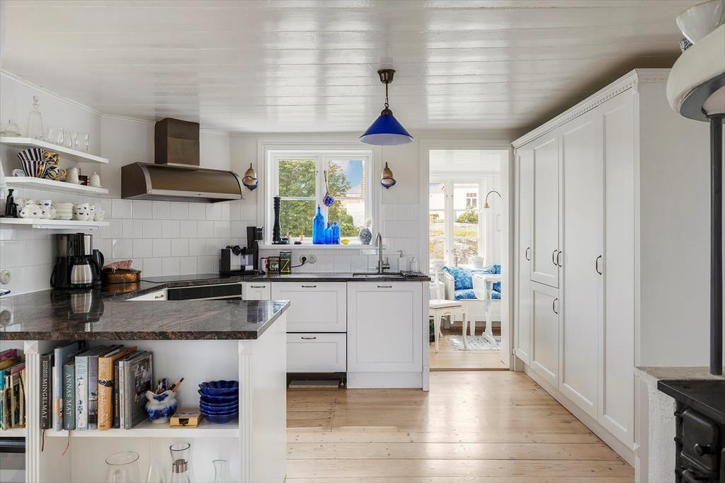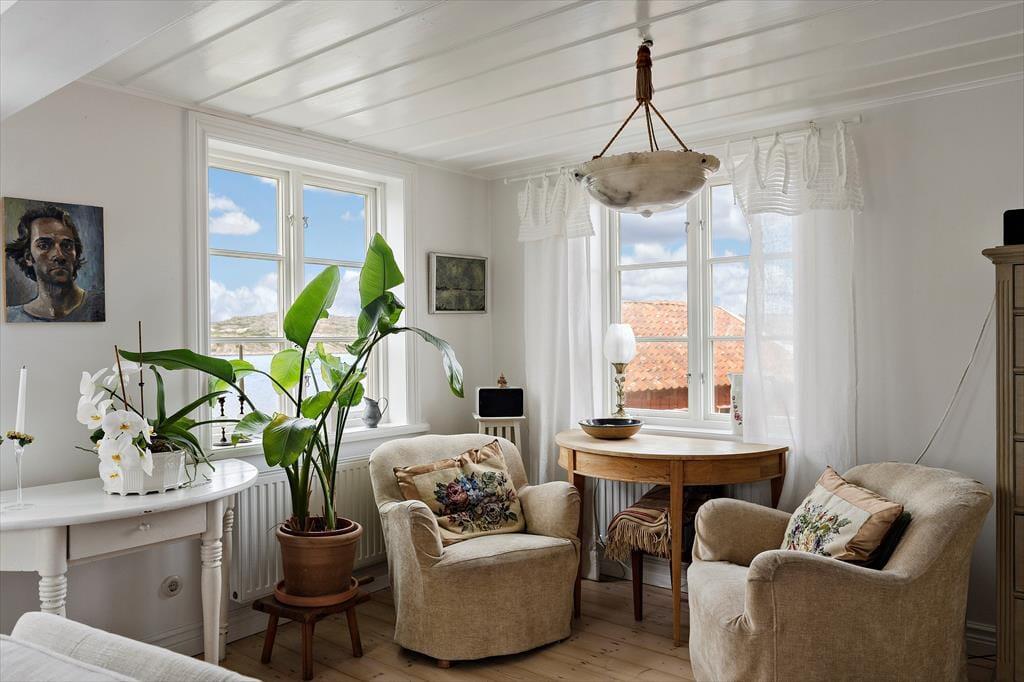 Det tidligere fiskerhus i to etager, som blev opført i 1890, blev gennemgribende renoveret i 2019 og udvidet med tilbygninger, så det nu har et boligareal på ca. 120 m². I stueetagen har huset en møbleret udestue, en hyggelig og rummelig opholdsstue med to sofagrupper og en kakkelovn samt et moderne køkken udstyret med emhætte, elektrisk komfur med ovn, kaffemaskine og elkedel. Derudover er der et stort badeværelse med bruser, toilet og håndvask.