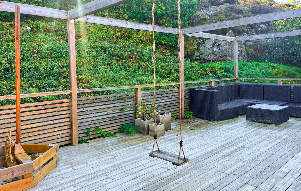 Indrammet af klipper og træer, der er typiske for den svenske vestkyst, tilbyder haven masser af plads til at slappe af. Læn jer tilbage på terrassen med en kop kaffe, mens I nyder en livlig snak eller fordyber jer i jeres ferielæsning. Når solen går ned om aftenen, forvandles terrassen til et stemningsfuldt sted, hvor I kan nyde lange sommeraftener med et glas vin.