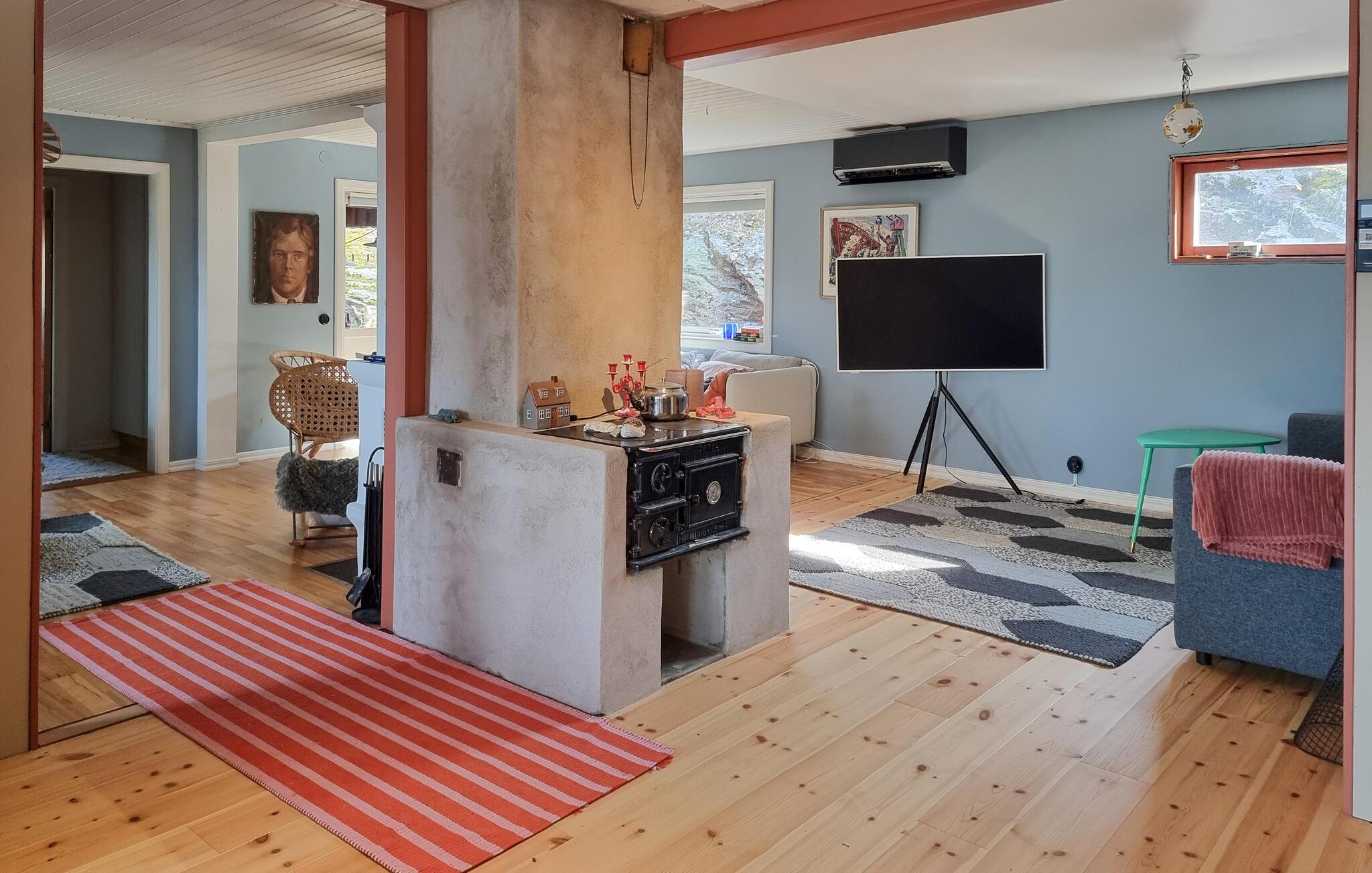 Lad jer begejstre af den hyggelige atmosfære i dette hus, som troner på klipperne og byder på fantastisk udsigt over skærgården. Nyd rolige stunder i den stilfuldt indrettede opholdsstue, eller udforsk de afvekslende omgivelser. Det rummelige hus imponerer med lyse trægulve, diskrete vægfarver og mange smukt valgte detaljer. Slap af i de komfortable siddeområder, eller tilbered maden sammen i det åbne køkken med spisebord og panoramaudsigt. Benyt husets forskellige hyggekroge til at se tv, læse en god bog eller bare til at slappe af.