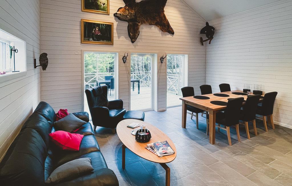 Velkommen til vildmarken og denne hyggelige hytte med nærhed til havet! Hytten er komfortabel og moderne udstyret med alt det, I behøver, til en ubekymret ferie. Tilbered og nyd lækre feriemåltider sammen og slap dejligt af foran brændeovnen efter en aktiv dag i naturen. Nyd solens stråler på terrassen og udsigten over landskabet. Børnene og deres firbenede venner kan lege uforstyrret på grunden omkring huset.