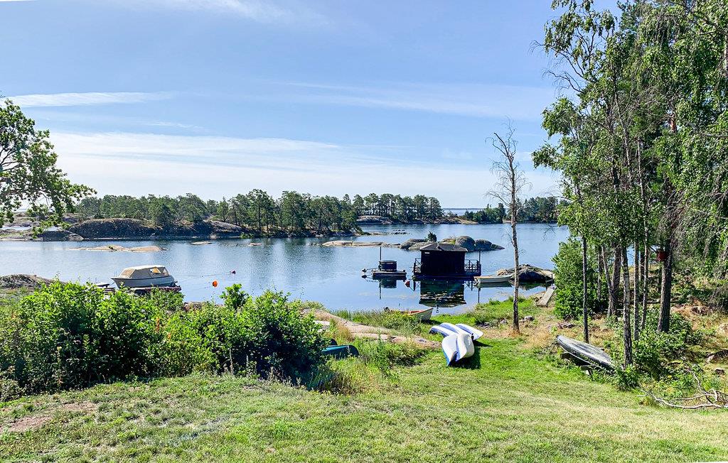 Smuk udsigt over øhavet fra husets store vinduer og fra terrassen. Her kommer du ind i stuen i huset med store vinduer og et vidunderligt lys. Her finder du både spiseplads og sofagruppe at hænge ud i. Det veludstyrede køkken åbner op til højre og ved siden af ??finder du badeværelset og soveværelset. Trinene fører dig op på hemsen, som har et rigtigt soveværelse med en dør til at lukke. Fra hoveddøren har du så ikke mange trin ned til vandkanten og broen. Her kan du både svømme fra klipperne og fiske. Husejeren lejer også både både og kanoer ud til dem af jer, der ønsker at gå ud på søen. Det er også muligt af boligejeren at bestille forskellige oplevelsespakker på stedet.
