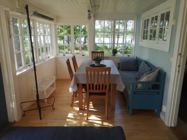 Huset ligger helt alene og uforstyrret længst ude på en halvø. Der er en stor, glasinddækket veranda med sø-udsigt på 3 sider. Bådebroen ligger kun 10 meter fra huset. Her kan I sidde og nyde solnedgangen og samtidig fiske.