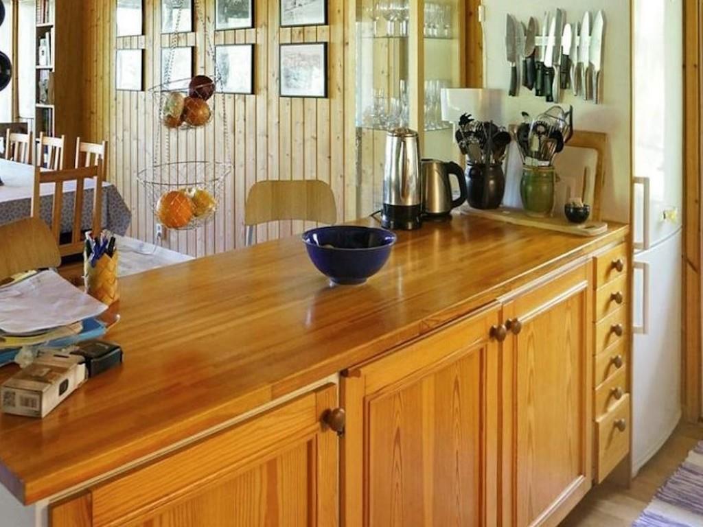 Huset har en stor, (45m2) dejlig dagligstue i åben forbindelse med køkkenet, der er moderne og godt udstyret med bl.a. opvaskemaskine og en praktisk serveringsdisk, hvor de, der ikke er med til at lave mad, også kan sidde og nyde et glas imens.