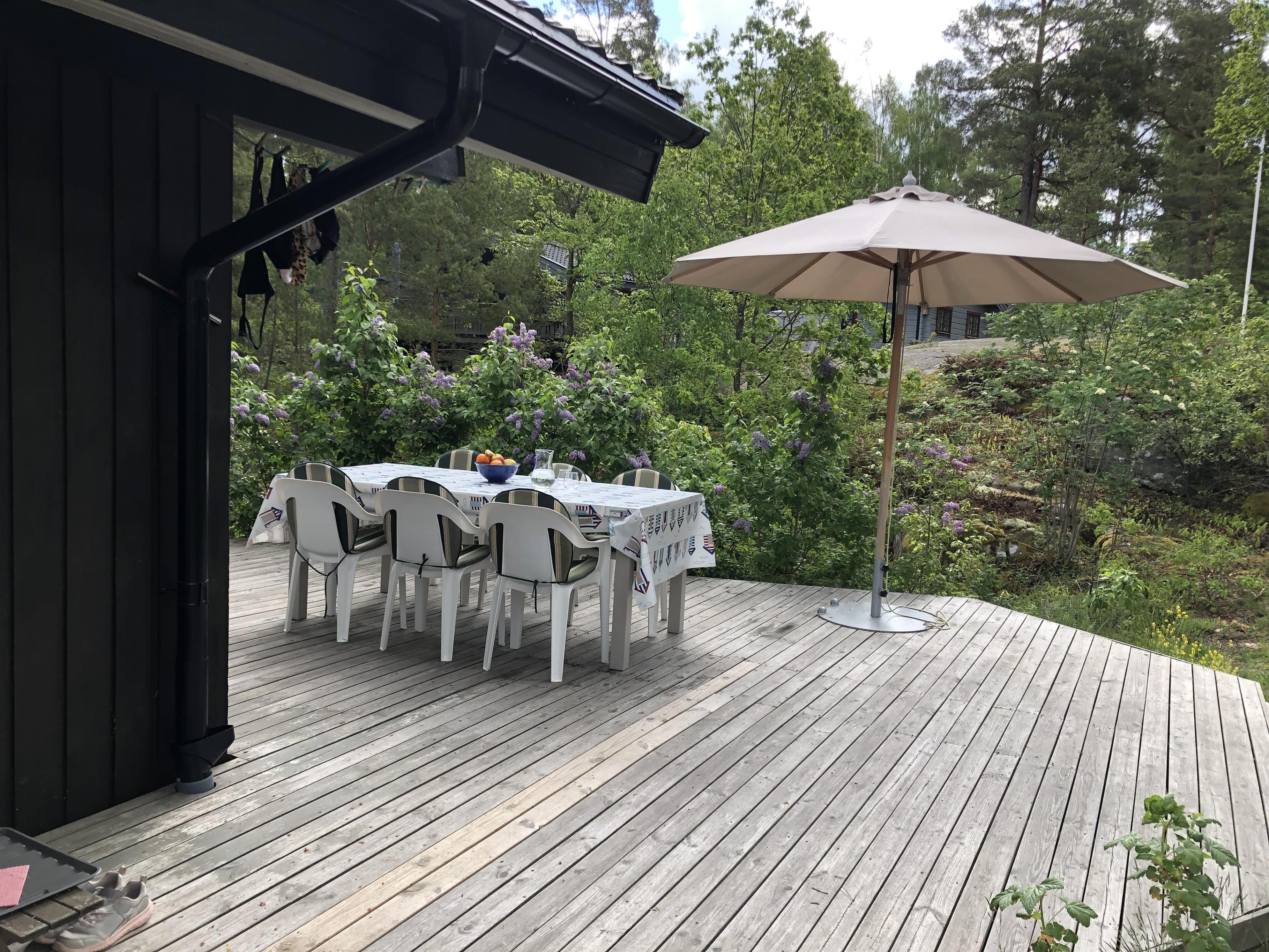 På den store terrasse, som omgiver næsten hele huset, er der flere udemøbler og en spiseplads med grill, alt efter om I søger lidt skygge eller bare vil sole jer og slappe af. Til huset hører to cykler, som normalt indgår i lejemålet (hvis de ikke er gået i stykker i et foregående lejemål).