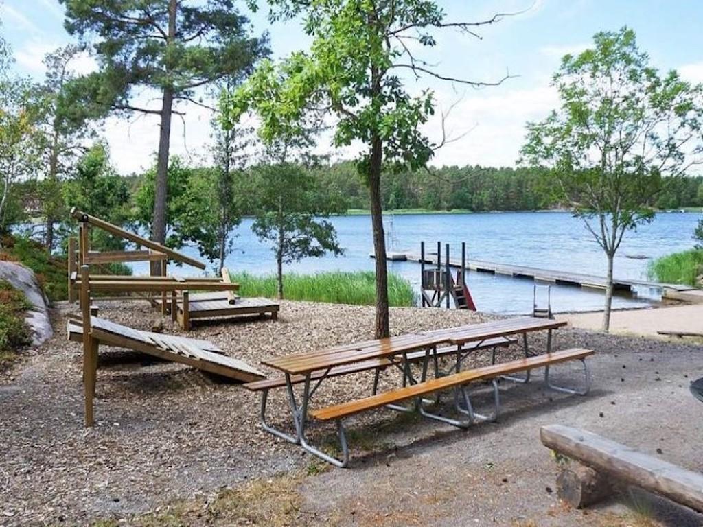 Der er mindre end 100 m ned til den store, fine badestrand ad en lille sti. Her nede er der en sandstrand, græsområder, udendørs gymnastik- og legeredskaber, grill-plads, badebroer, udspringstårn og en stor, dejlig sauna, der deles af alle i feriehusområdet.