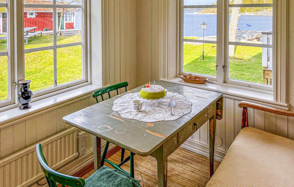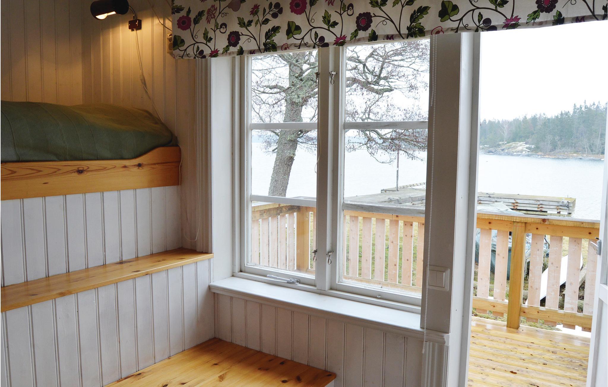 Huset ligger på en strandgrund i Roslagen og har fem sovepladser, tre i soveværelset og to i stuen, samt en dejlig terrasse med havudsigt. Køkkenet har alt nødvendigt udstyr, herunder også en opvaskemaskine. Saunaen deles med ejer.