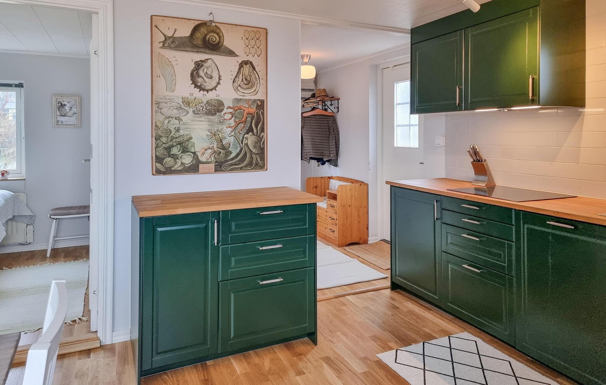 Nyd den hyggelige atmosfære i dette kærligt indrettede hus, som byder på en betagende udsigt over havet fra dets store panoramavinduer. Lav mad i det moderne køkken og spis ved det indbydende spisebord, mens I beundrer de smukke solnedgange. find jer godt til rette i lænestolen med en bog eller tilbring harmoniske timer med at spille et brætspil.