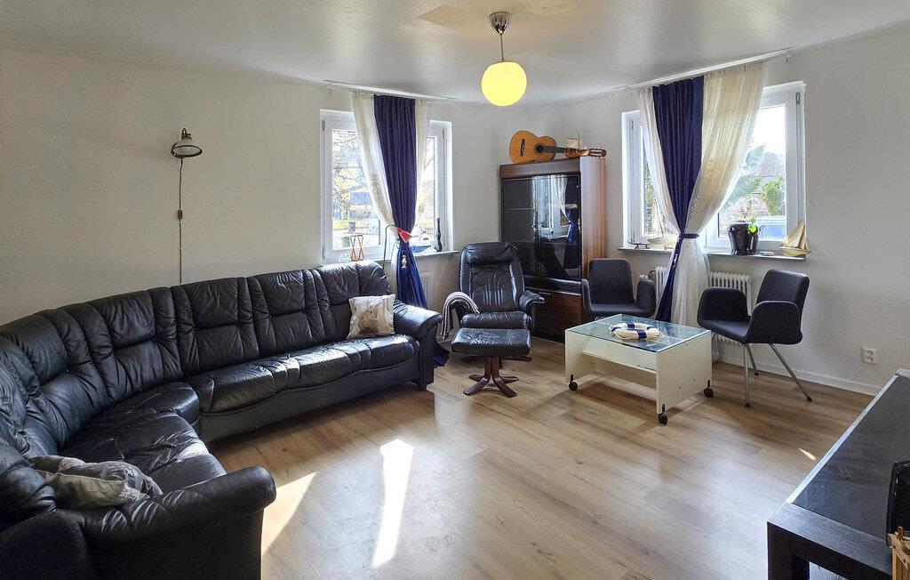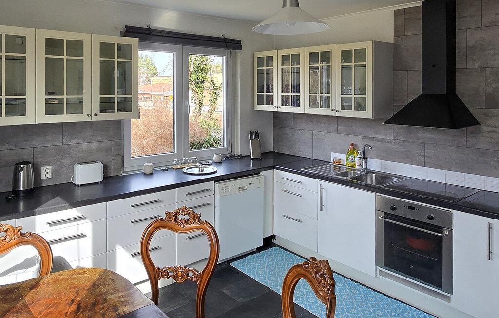 Bliv budt velkommen af det rummelige opholdsrum i jeres ferielejlighed. Slå jer ned i den store sofa, læs en god bog, eller afhold en filmaften med familien. Indretningen er funktionel og hyggelig, og store vinduer sørger for masser af dagslys. Det dejlige køkken-alrum giver jer god plads til madlavning og bagning. Ved det charmerende træbord kan I samles til fælles morgenmad eller aftensmad.