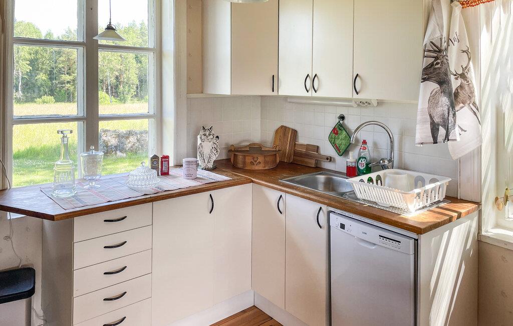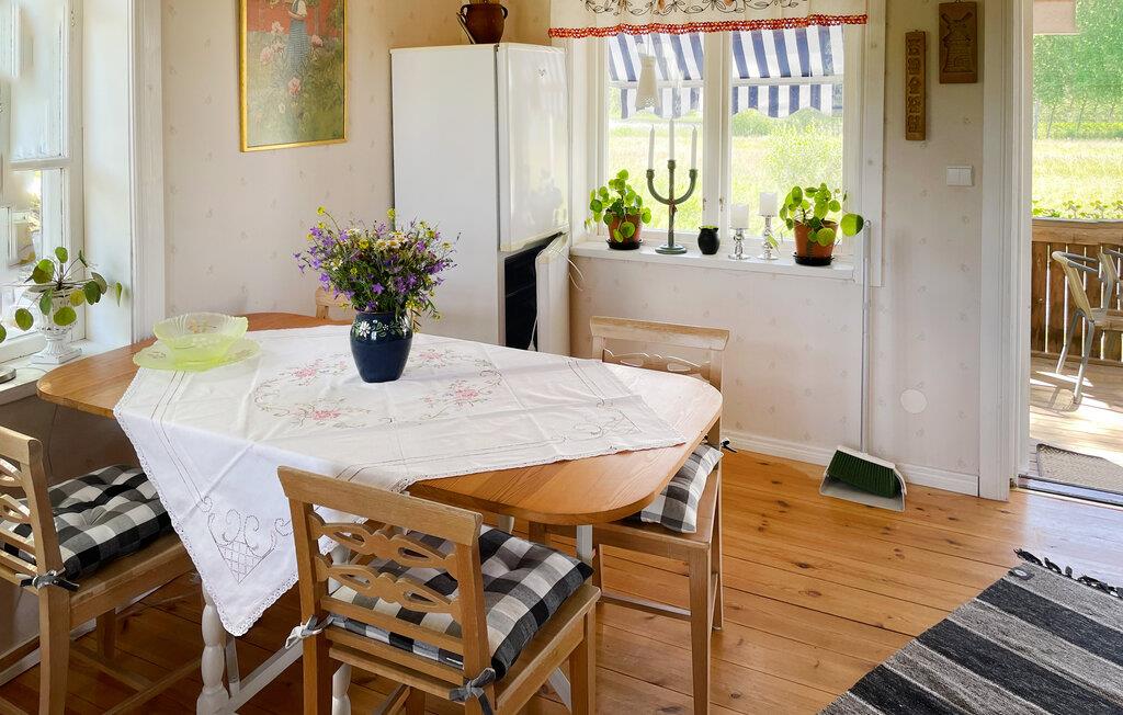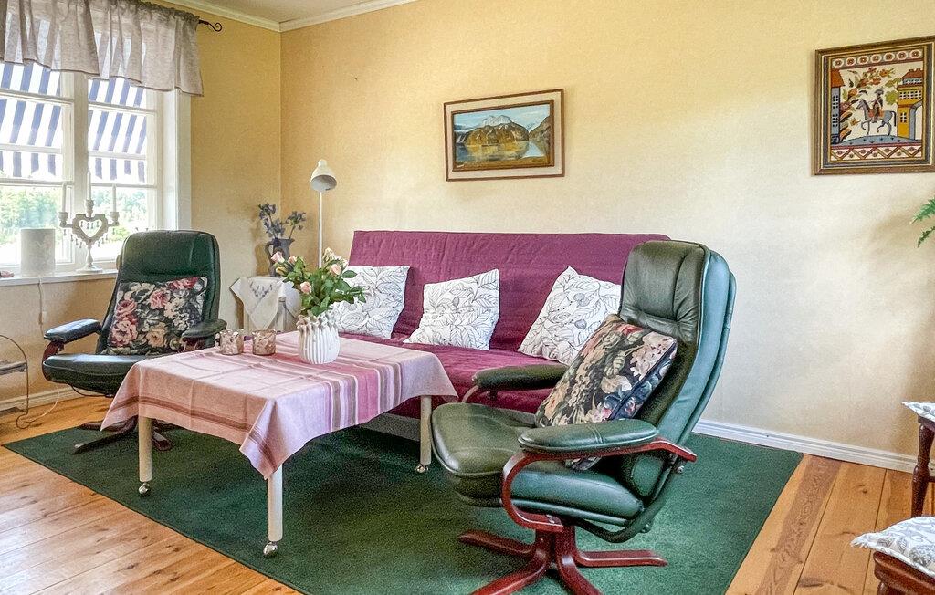 Hold en afslappende ferie i dette dejlige hus i Ramsnäs. Den hyggelige indretning og det lyse design skaber en hyggelig og indbydende atmosfære. Blandingen af moderne løsninger og rustik charme skaber et harmonisk miljø, der fremmer afslapning og velvære. Den lyse bolig byder på komfort, mens verandaen er et ideelt sted at nyde en kop kaffe og nyde udsigten over den omkringliggende natur.