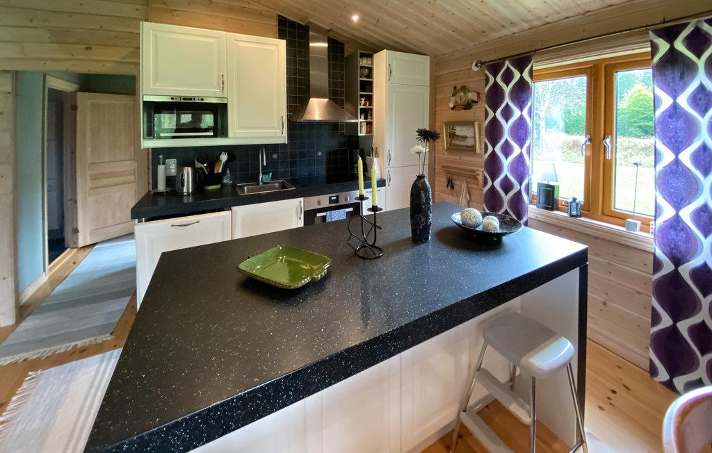 Tag til Rishult med jeres familie og bo i dette tiltalende feriehus med hjemlig charme. Hyggelige møbler, moderne elementer, indbydende dekor og frem for alt naturtræ skaber en varm og behagelig atmosfære, hvor hele familien vil føle sig godt tilpas. I har en vidunderlig udsigt over de grønne omgivelser gennem de store vinduer på alle tidspunkter af dagen, især når I hygger jer ved spisebordet.