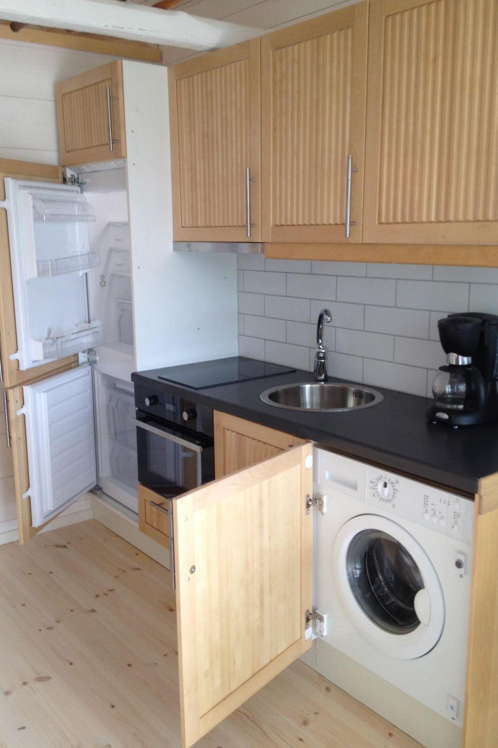The house provides around 37m² of living space and can accommodate three adults and two children. The centrepiece is the open living and dining room with a sofa bed (110 x 200cm), a kitchen unit and a view of the water. The kitchen includes a stove with a ceramic hob, an oven, a microwave, washing machine, coffee machine and fridge with a freezer compartment. The bedroom has a double bed (160 x 200cm) that can also be separated into two single beds and a built-in cupboard. Pillows and blankets are provided. There are two further single beds (90 x 200cm) in the loft. Please note that the ceiling is very low there and that the stairs up to the loft are very steep. The bathroom is tiled and has under-floor heating. Wireless Internet access and a 42” flatscreen TV (full HD LED TV) with satellite channels provide entertainment. There are more than 90 german satellite channels in the house.