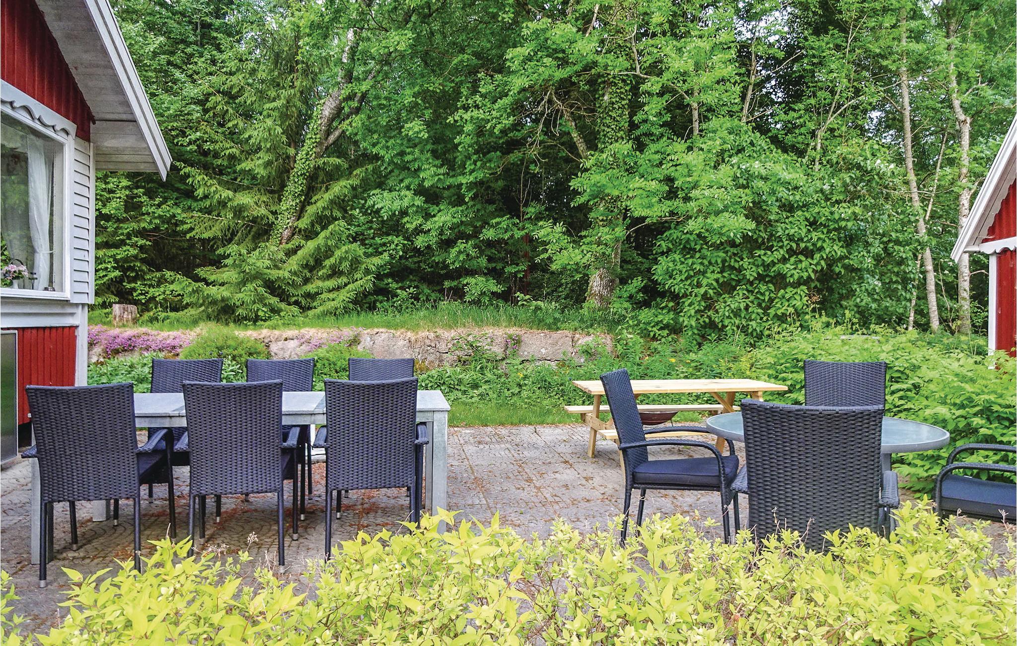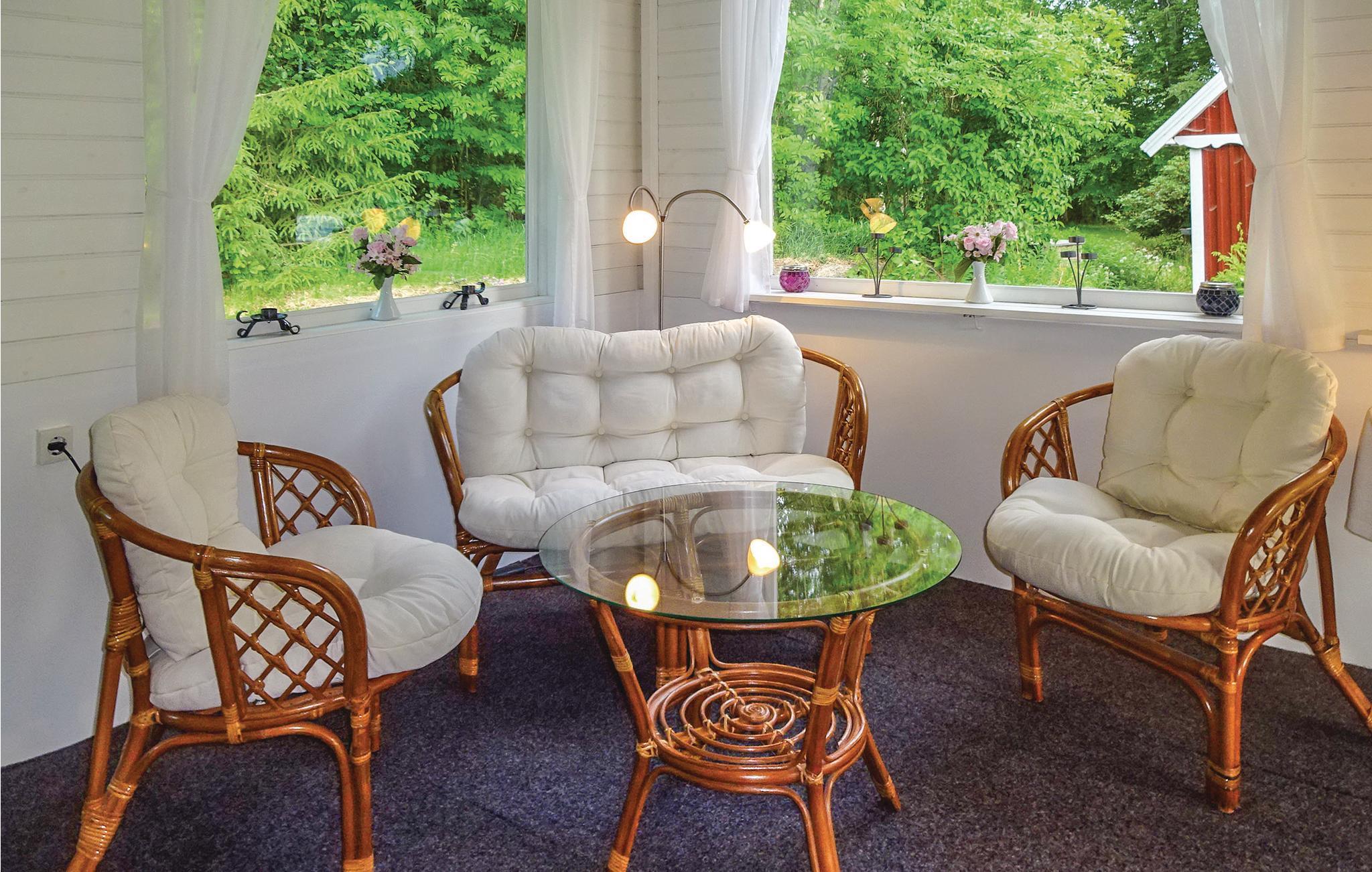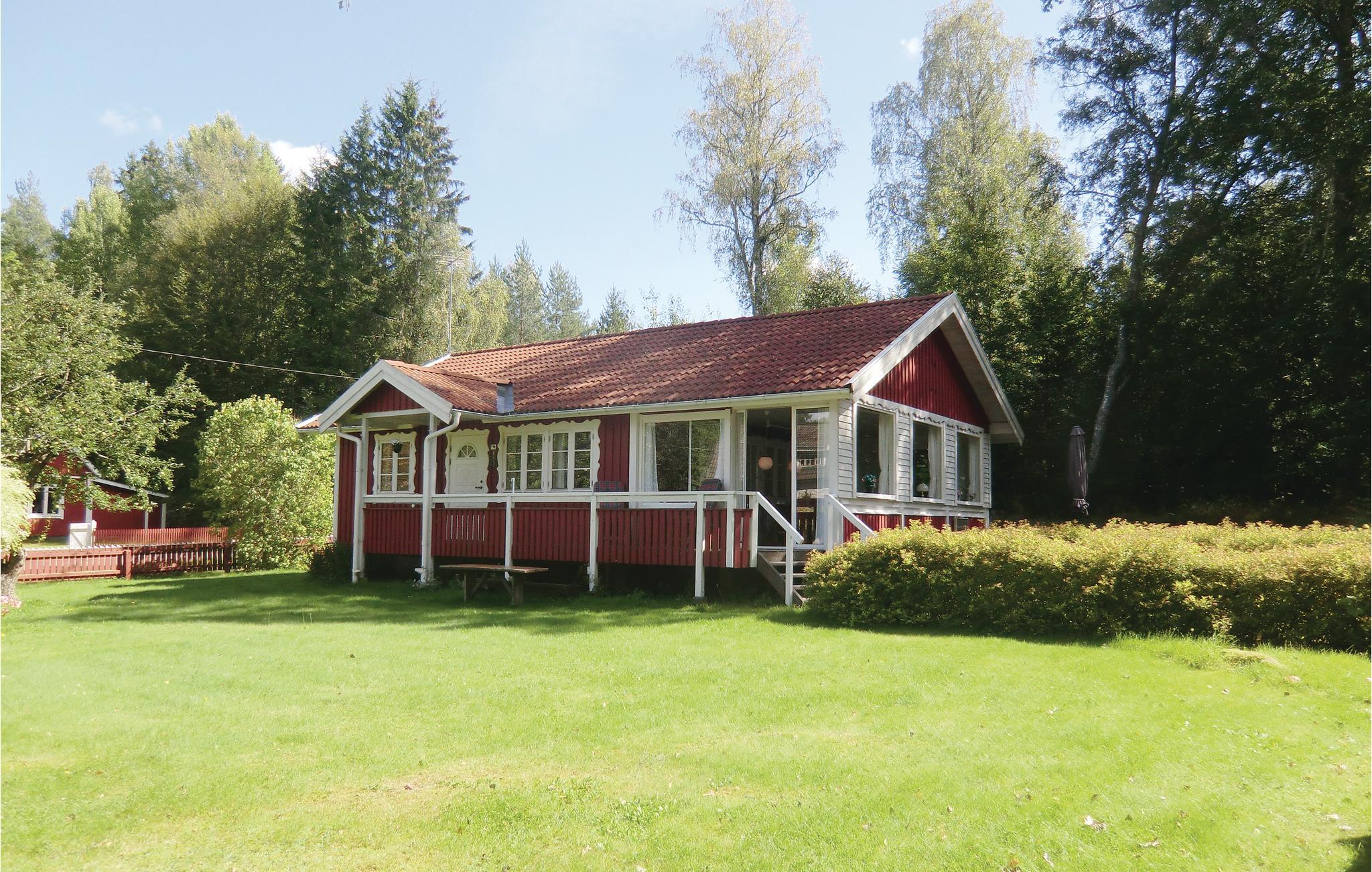 Dejligt feriehus der er opdelt i to separate huse - begge har køkken, bad, spiseplads og alrum. Husene ligger på en stor grund, hvor I kan nyde udsigten over Ronnebyån, der ligger lige ved husene. Her er både bade- og fiskemuligheder (aborre, gedde og ørred) i åen. Båd er inklusiv i lejen, yderligere både kan med fordel lejes på den nærliggende campingplads. Der er stejl trappe til hemsen med en loftshøjde på 1,70 m. Soveværelse 3 har indgang udefra. Der er gode shoppingmuligheder i Karlskrona, Karlshamn og Ronneby. Indenfor en radius på ca. 30 km ligger der tre gode golfbaner at vælge imellem. I Karlskrona ligger bl.a. Marinmuseet, som er et besøg værd, ligesom Barnens Gård. I kan også vælge at tage på en dagsudflugt til Kalmar eller Öland med mange oplevelser. En tur med en af skærgårdsbådene kan ligeledes anbefales. Huset ligger nær en lille vej.