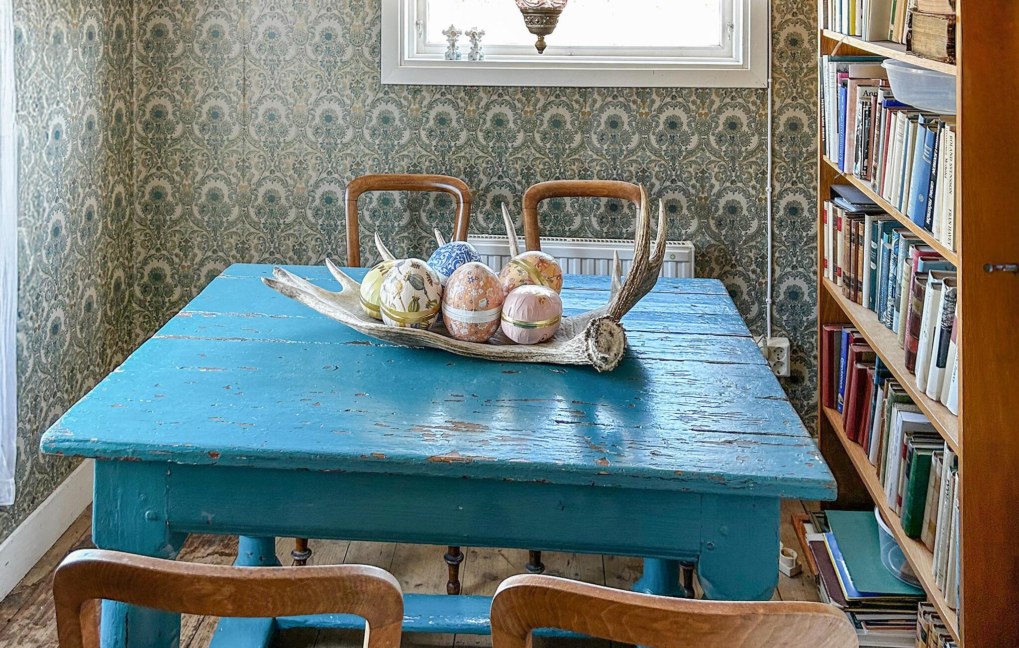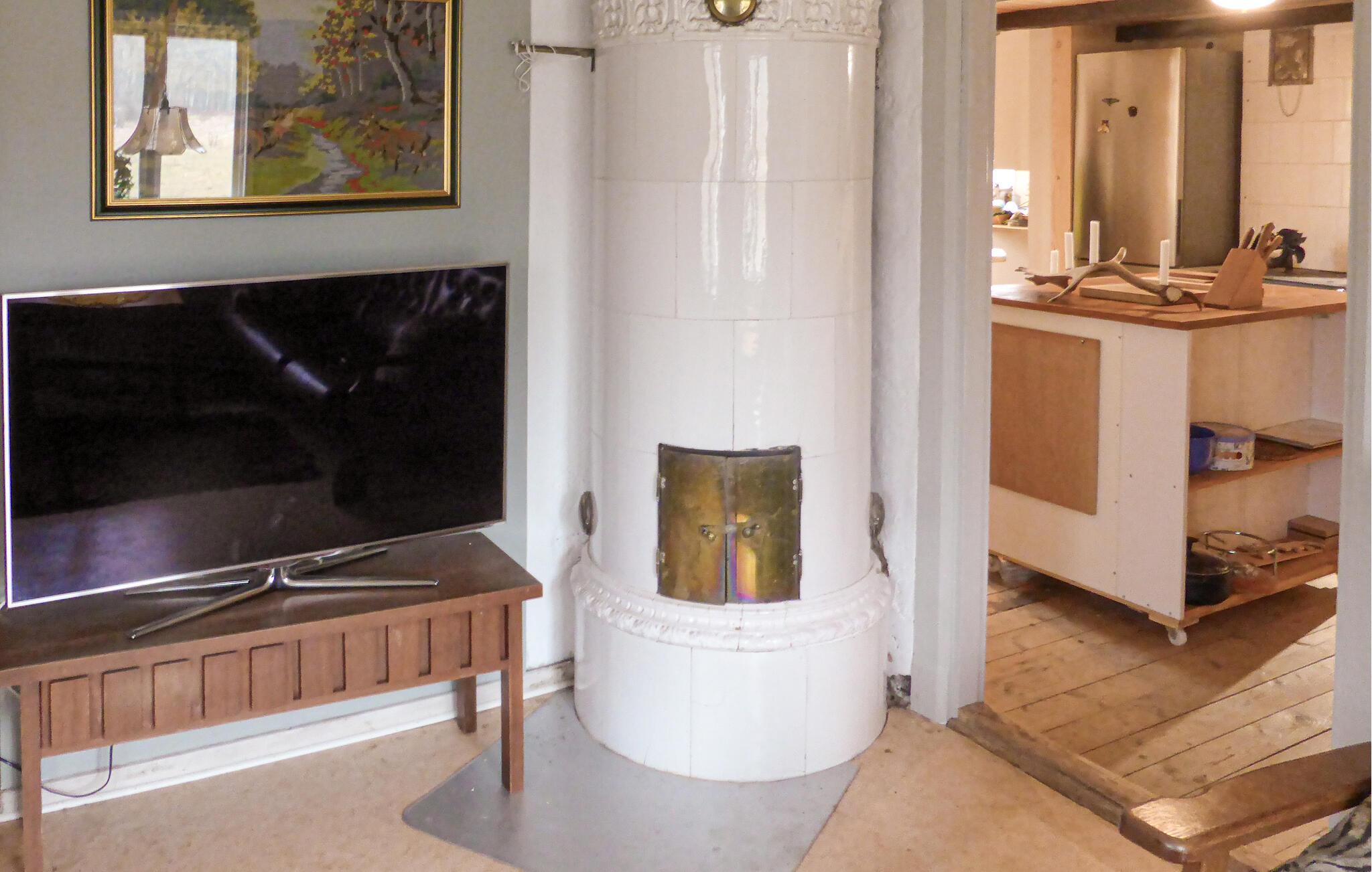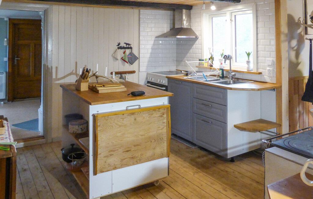 Hold en afslappende ferie i landlige omgivelser. Huset kombinerer historisk karakter med hyggelig komfort. Lav mad i det kompakte køkken med køkkenø, og nyd måltiderne ved det gamle spisebord. Bagefter kan I gøre det behageligt i stuen, hvor kakkelovnen sørger for hyggelig varme på køligere aftener. Bogreoler og omhyggeligt udvalgte dekorationer skaber en særlig atmosfære. I alle rum kan man mærke husets historie og dets nærhed til naturen.