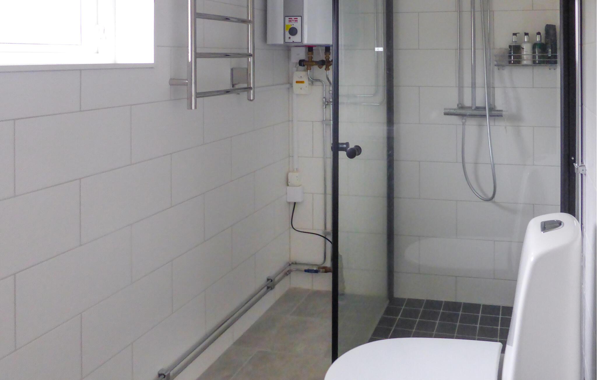 Badeværelse (nr. 1) - WC. Varmt og koldt vand. Bruser