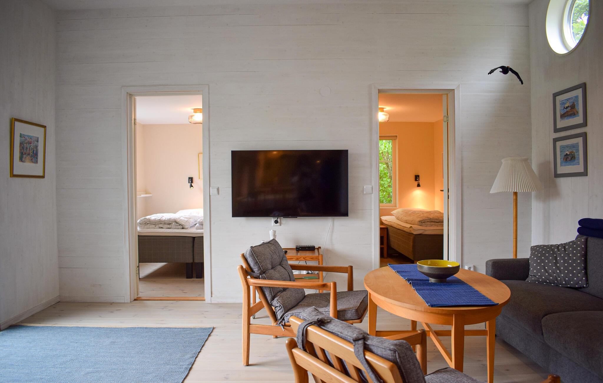 Lidt længere ude har I adgang til en skøn strand med badebro. Her kan I bade og nyde livet, inden det igen går løs med oplevelser. I Blekings skærgård kan I tage på skønne ture på en af ??turbobådene, som sejler til øerne fra Karlshamn, eller tage en tur rundt i skærgården. I kan godt fiske både i Mörrumsån og i havet. Der er flere flotte vandreruter i området, for eksempel i Brunnsskogen. Det kan også anbefales at køre en tur til Ronneby Brunn med SPA, svømmehal med vandrutsjebane, minigolf og restaurant, samt et besøg i Ericsbergs naturreservat. Vil I shoppe eller slentre gennem en af ??de smukke kystbyer, kan I nemt nå til Karlshamn, Karlskrona, Ronneby og Kristianstad.
