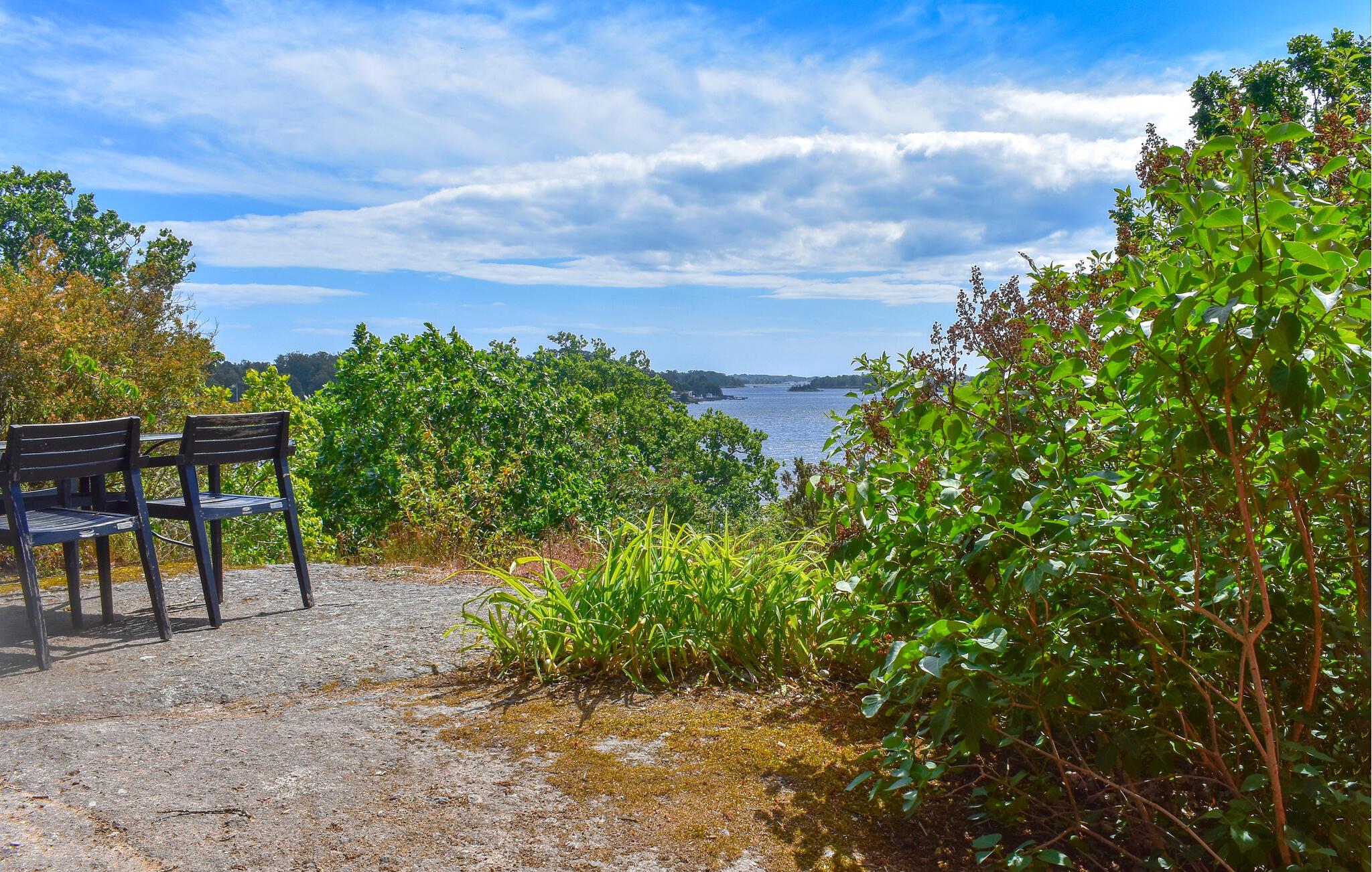 Haven er dejligt grøn og har en fantastisk ro, som forstærkes af den smukke udsigt til vandet. Nyd dagens måltider her, inden I går de få meter ned for at bade eller fiske.