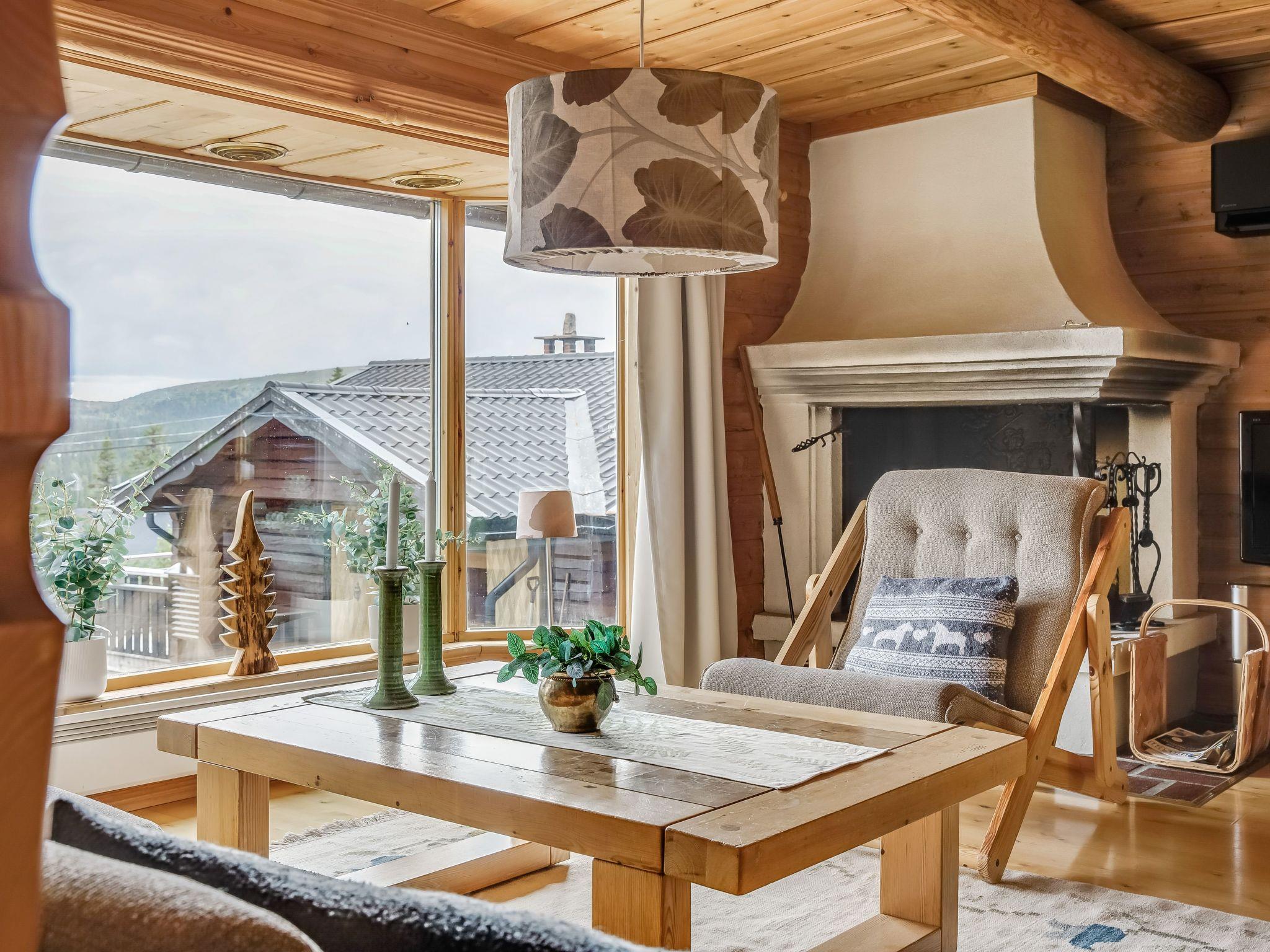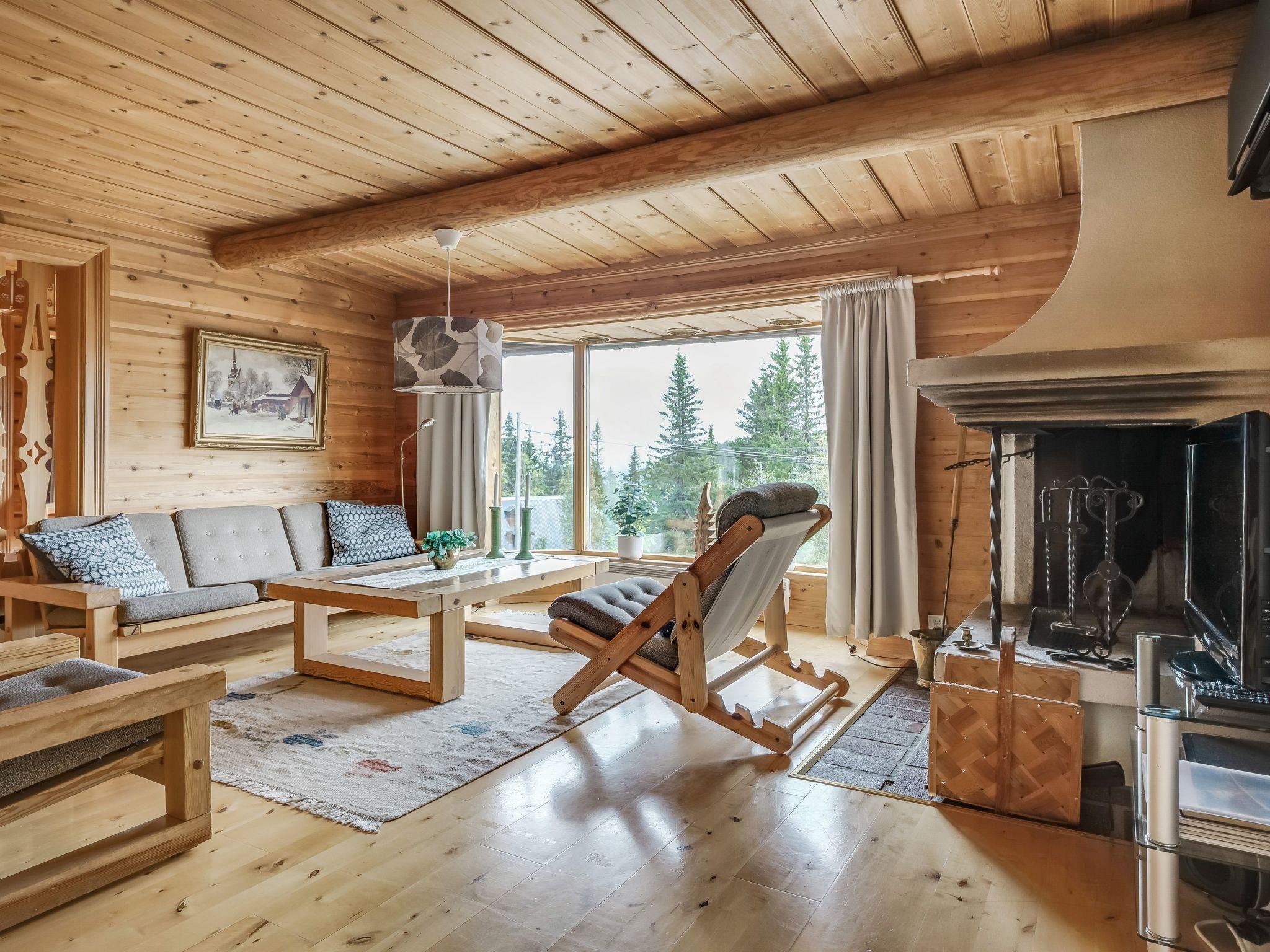 "Korpstigen Älgen", 3-room house 75 m2. Wooden furniture furnishings: living/dining room with open-hearth fireplace, dining table, TV and CD-player. Exit to the veranda. 1 room with 1 double bed. 1 room with 2 x 2 bunk beds. Open kitchen (oven, dishwasher, 4 ceramic glass hob hotplates, microwave, freezer, electric coffee machine). Shower/WC, Sauna. Electric heating. Wooden floors. Terrace furniture, barbecue (portable). Panoramic view. Facilities: washing machine, iron, children's high chair, baby cot. Please note: non-smoking house. Smoke alarm, fire extinguisher. Freezer approx. 80 l.