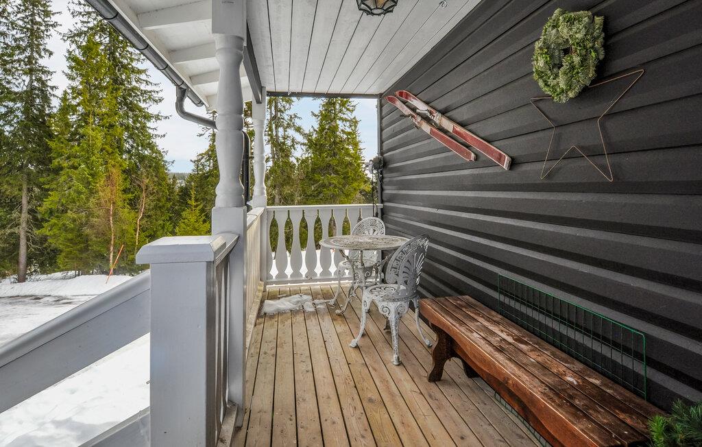 Nyd den friske bjergluft på den overdækkede træterrasse. Slap af med en kop kaffe og lad blikket vandre over de snedækkede trætoppe om vinteren eller det blomstrende landskab om sommeren. Brug grillen til hyggelige aftener eller nyd freden og roen på bænken.