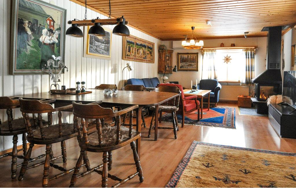 Oplev afslappende dage i dette feriehus i Sälen, som kombinerer komfort og rustik charme. Uanset om det er sommer eller vinter, tilbyder dette feriehus det ideelle feriested for både friluftsmennesker og aktive feriegæster. Den rummelige opholdsstue er indrettet med komfortable sofaer, traditionelle træmøbler og en indbydende brændeovn. Lad jer fortrylle af den varme atmosfære og nyd selskabelige aftener med spil eller en god bog. Det store spisebord giver plads til fælles måltider, som I kan tilberede i det hyggelige køkken. Madlavning bliver en fornøjelse her.