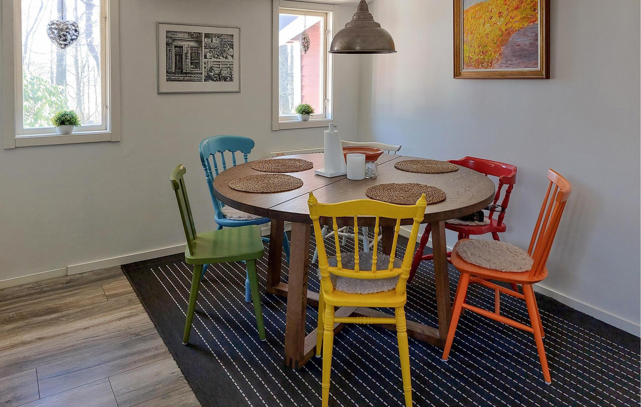 Velkommen til dette lyse og rummelige feriehus, hvor hyggelige dage med familien venter jer. Fremtryl lækre retter i det lyse køkken og sæt jer ved det indbydende spisebord, som også er perfekt til hyggelige spilleaftener. Efter en lang dag kan I slappe af i den behagelige sofa, streame en film eller lytte til knitren fra pejsen, mens I læser en god bog.