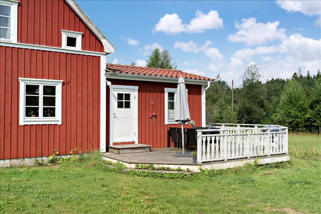 Dette hus er velegnet til alle, der gerne vil have skov og sø lige uden for døren. Det ligger på en eng midt i skoven og tæt på en bakke med fantastisk udsigt. Til huset hører 28 hektar skov, fyldt med blåbær og kantareller. Huset ligger i Hetseryd, syd for Vrigstad, for enden af en privat blind vej og ca. 1 km fra nærmeste nabo. Området er meget kuperet med mange søer. Gennem skoven når man på ca. 5 minutter den lille sø Kåragårdsgölen, der grænser op til grunden, og hvor husets egen robåd ligger. På 5 minutter når man også den store sø Norrsjön, hvor der også er en badested ca. 10 minutter fra huset. Astrid Lindgrens Värld, Kleva Gruva og High Chaparral kan nemt nås i bil. Indkøbsmuligheder, apotek og hæveautomat findes i Vrigstad, 7 km fra huset. Der er et posthus 5 km væk i Stockaryd, hvor det også er muligt at handle. I Sävsjö, 20 minutter i bil, er der flere store supermarkeder.