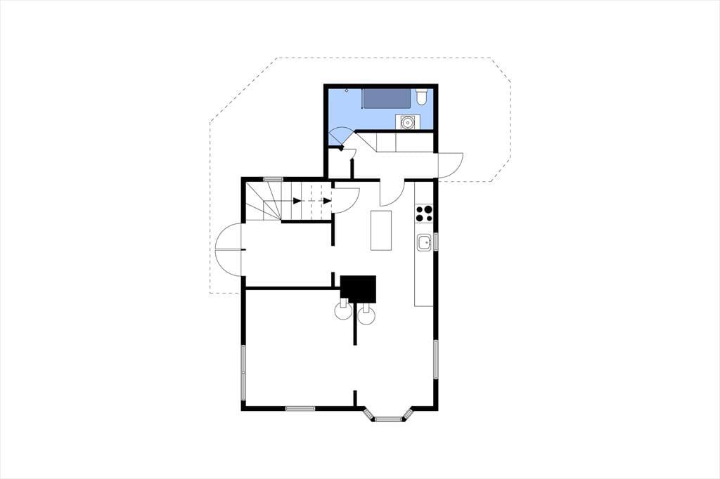 Ca. 130 m² stort feriehus med plads til 6 voksne og 2 børn. Huset er totalrenoveret og isoleret og har en stue med køkken med direkte adgang til stuen med brændeovn, tv og dvd, entré med trappe til 1. sal, lille gang og spisekammer med køkkenmaskine. Huset er indrettet med smukke, antikke svenske møbler, der skaber en helt særlig, hyggelig atmosfære. Køkkenet er helt nyt og har opvaskemaskine, køleskab med fryser, induktionskomfur, emhætte og et stort spisebord. Huset har desuden et helt nyt badeværelse med toilet, badekar og bruser. Der er i alt tre soveværelser, hvoraf det ene har en dobbeltseng, et meget lille værelse med to enkeltsenge (boxmadrasser) samt et soveværelse med to enkeltsenge og en køjeseng til børn. Vaskemaskine og tørretumbler til rådighed. Huset opvarmes i stueetagen med varmekonverter og en effektiv brændeovn. På første sal er der elvarme. Til huset hører en stor ildsted samt en terrasse, der løber helt rundt om huset, med to store spisepladser på begge sider af huset, så du kan nyde solen hele dagen. Parasol, liggestole og havemøbler er til rådighed. Gæsterne har desuden adgang til hurtig gratis WiFi.