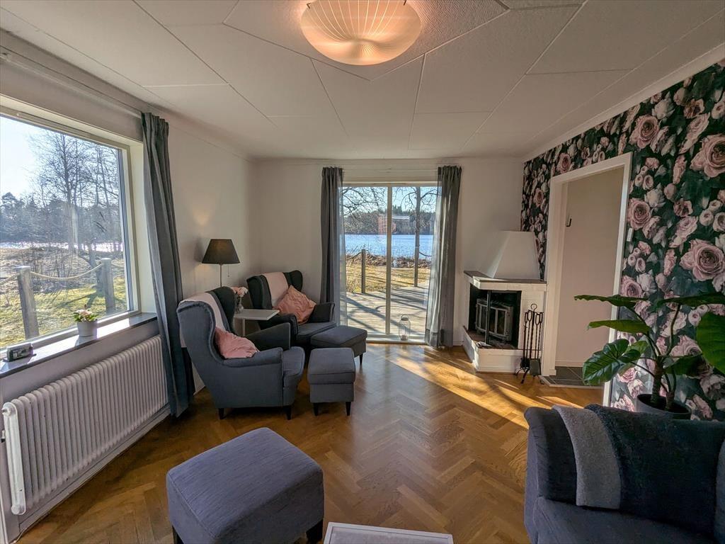 Omtrent midtvejs mellem Växjö og Jönköping ligger dette feriehus i det smålandske højland på den smalle landforbindelse mellem søerne Algunnen og Hillen i den lille by Rörvik. Den knap 1.000 m² store grund ved vandet ligger for enden af en lille blind vej, der fører til søen Hillen, og tilbyder direkte privat adgang til søen og egen badebro og bådbro, hvor der står en robåd klar til dig. Derudover er der 2 SUP-brædder i kælderen. Den nærliggende jernbanelinje vil næppe forstyrre dig, da der kun kører et tog cirka hver halve time. Du kan handle i den nærliggende købmand i Rörvik eller i ICA-markedet i Lammhult, der ligger ti kilometer væk. Der er knap to timers kørsel til Astrid Lindgrens verden i Vimmerby.