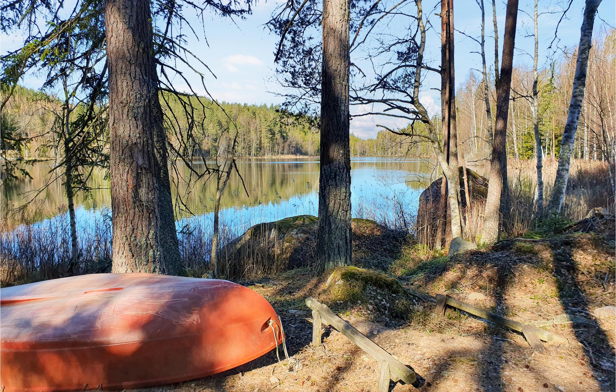 Velkommen til dette gamle røde træhus i naturlige omgivelser som noget ud af en Astrid Lindgren-roman. I de stemningsfulde lokaler med søde tapeter og charmerende detaljer er der plads nok til en lidt større familie. Det gamle komfur i spisekøkkenet bidrager til den historiske atmosfære. Mens I laver mad, kan børnene lave et puslespil ved spisebordet. Glem ikke puslespillet! Brug jeres friskplukkede blåbær til lækre muffins, som I senere kan nyde på den åbne terrasse. Gå til søen og prøv at fiske.