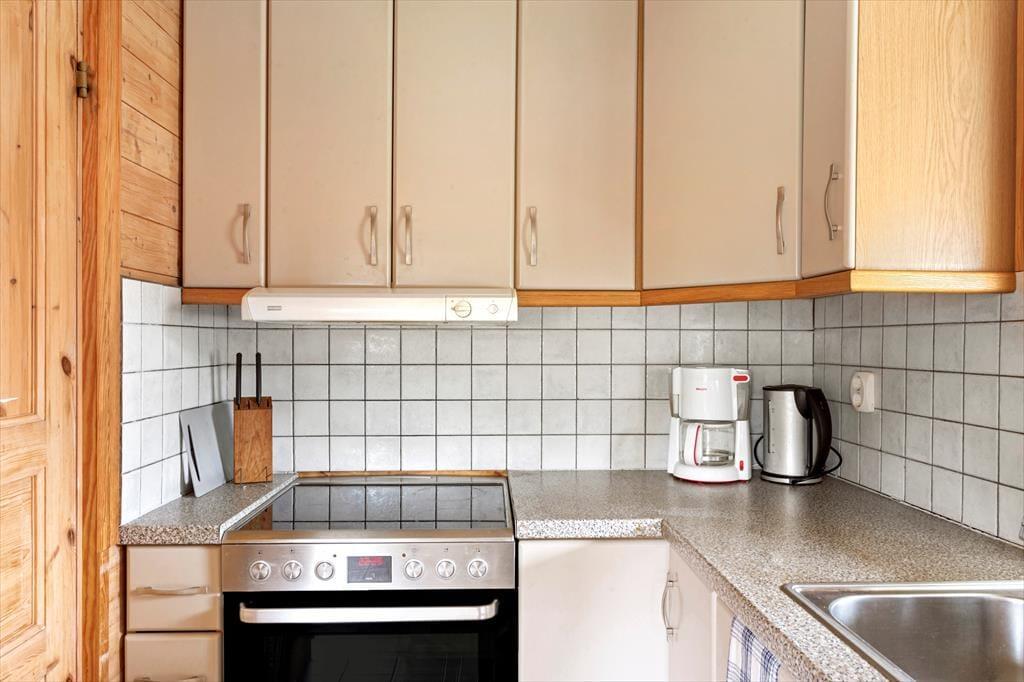 De fem feriehytter er bygget i samme stil, med lidt afvigende indretning. De er godt isoleret og udstyret med varmepumpe og brændeovn, så man også kan holde varmen om vinteren. Alle huse har fire enkeltmandssenge på øverste etage fordelt i to rum, med to senge i hver rum. I stueetagen er et opholdsrum med en dobbelt sovesofa og en brændeovn. Køkkenet ligger i åben forbindelse med stuen og er udstyret med el-komfur med fire kogeplader og ovn, køleskab med fryseboks, kaffemaskine og mikroovn. Ved siden af køkkenet er et toilet med bruser og WC. Der er internet i hytten.