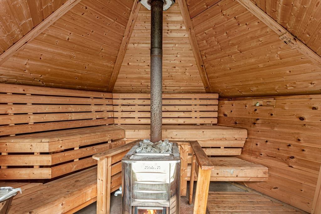 En af de fem hytter er udstyret som “servicehus” hvor man kan låne en vaskemaskine. Der befinder sig også en sauna- og grillhytte på grunden, som kan opvarmes med træ og som kan bruges af alle gæster på grunden. Der kan lånes cykler af gårdejeren.