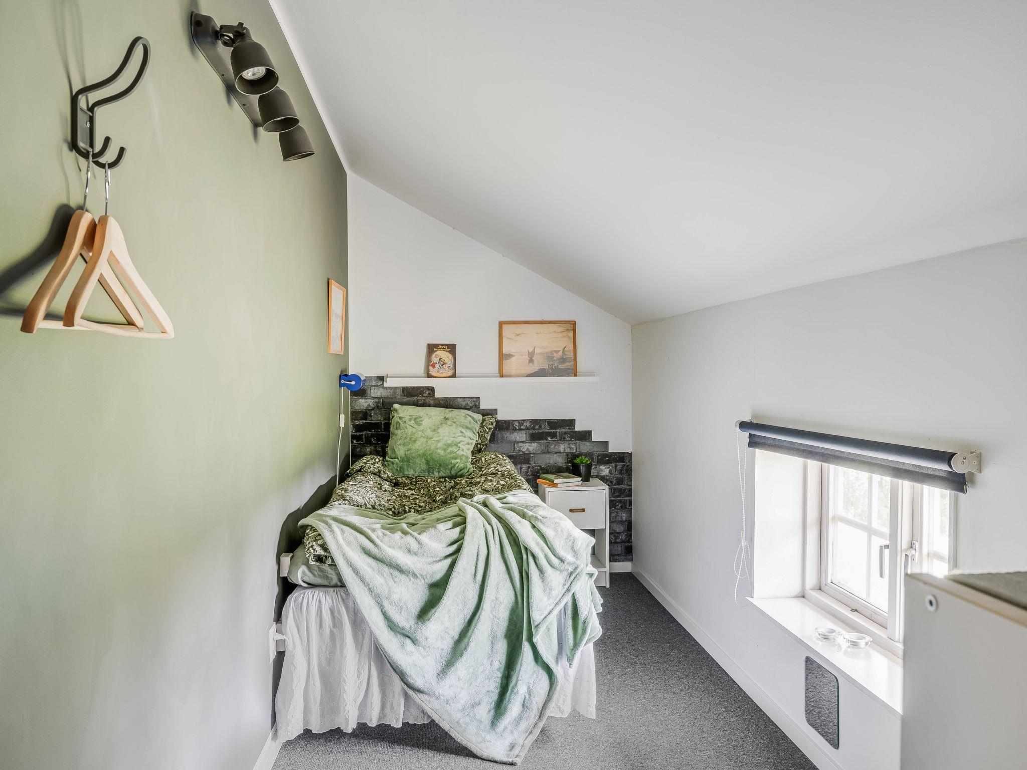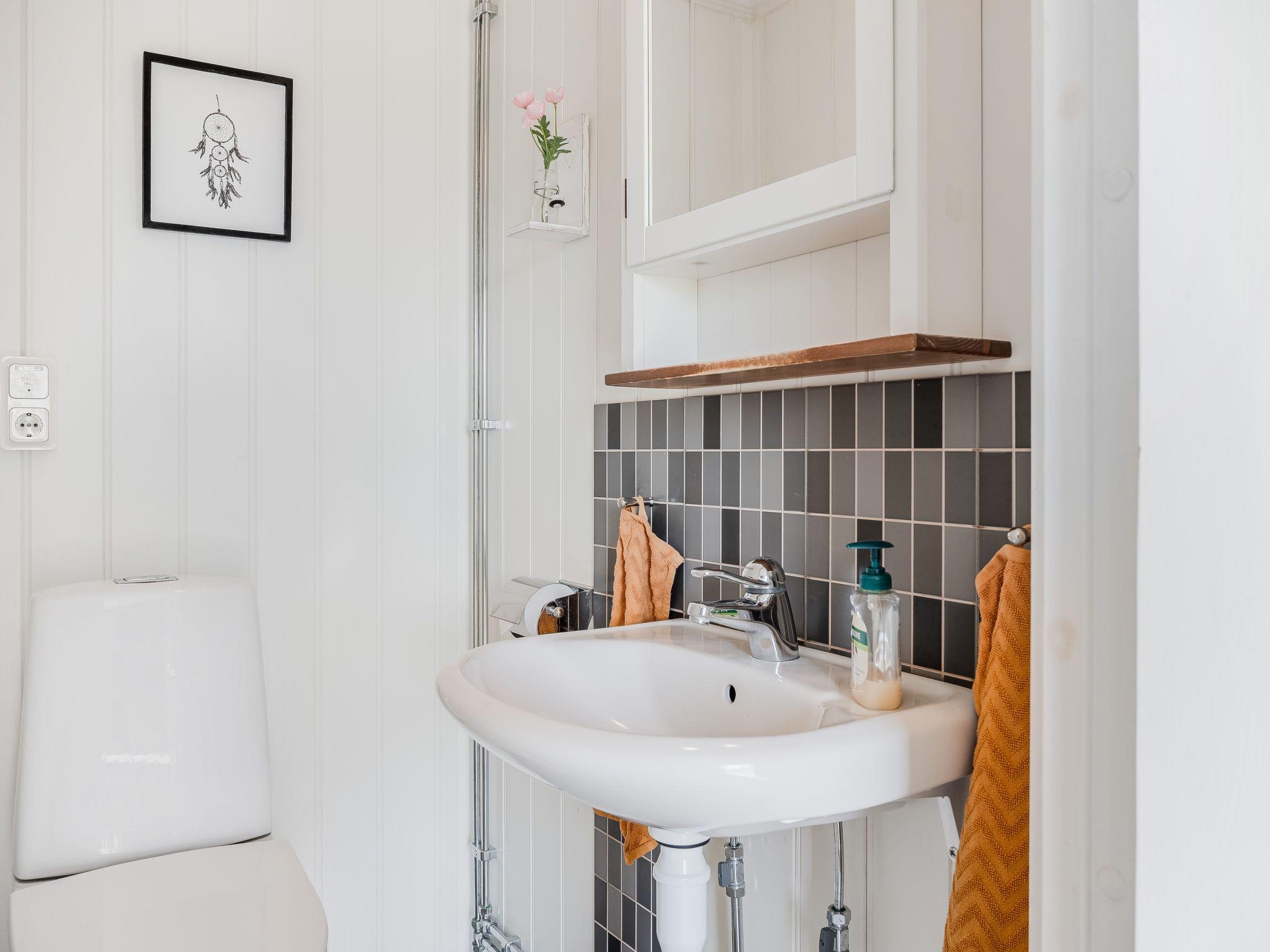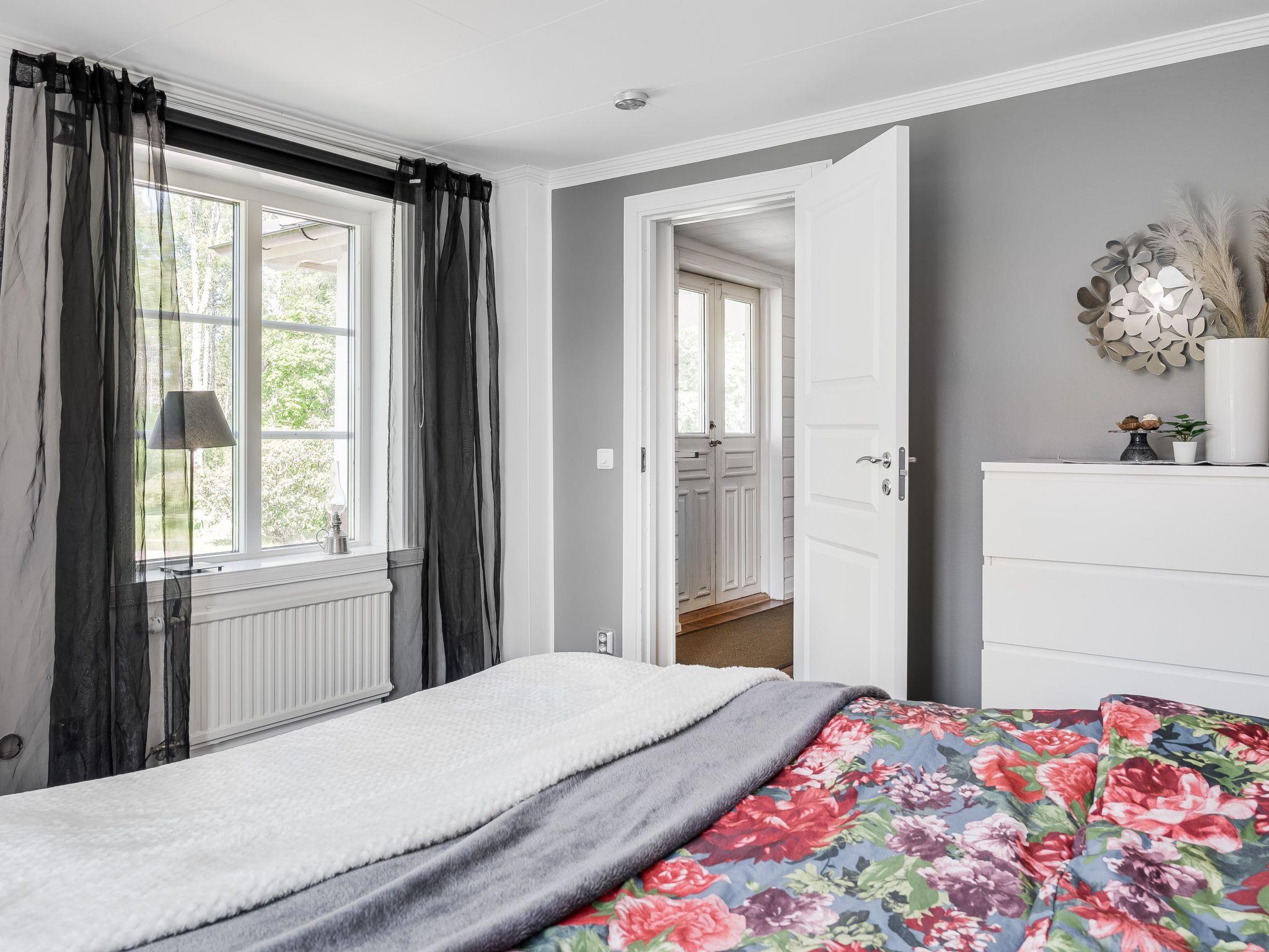 "Flugebacken", 7-room house 123 m2 on 2 levels. Object suitable for 6 adults + 1 child. Very tasteful furnishings: living room with satellite TV and electric heater. 1 room with 1 double bed (180 cm, length 200 cm). 1 room with 1 bed (90 cm, length 200 cm). Dining room with dining table. Large kitchen (oven, dishwasher, 4 induction hot plates, toaster, kettle, microwave, freezer, electric coffee machine) with dining table. Sep. WC. Electric heating. Upper floor: 1 room with 1 double bed (180 cm, length 200 cm). 1 room with 1 bed (90 cm, length 200 cm). Small living room. Shower/WC. Beautiful view of the garden. Facilities: washing machine. Internet (WiFi, free). Please note: non-smoking house. Smoke alarm, fire extinguisher.