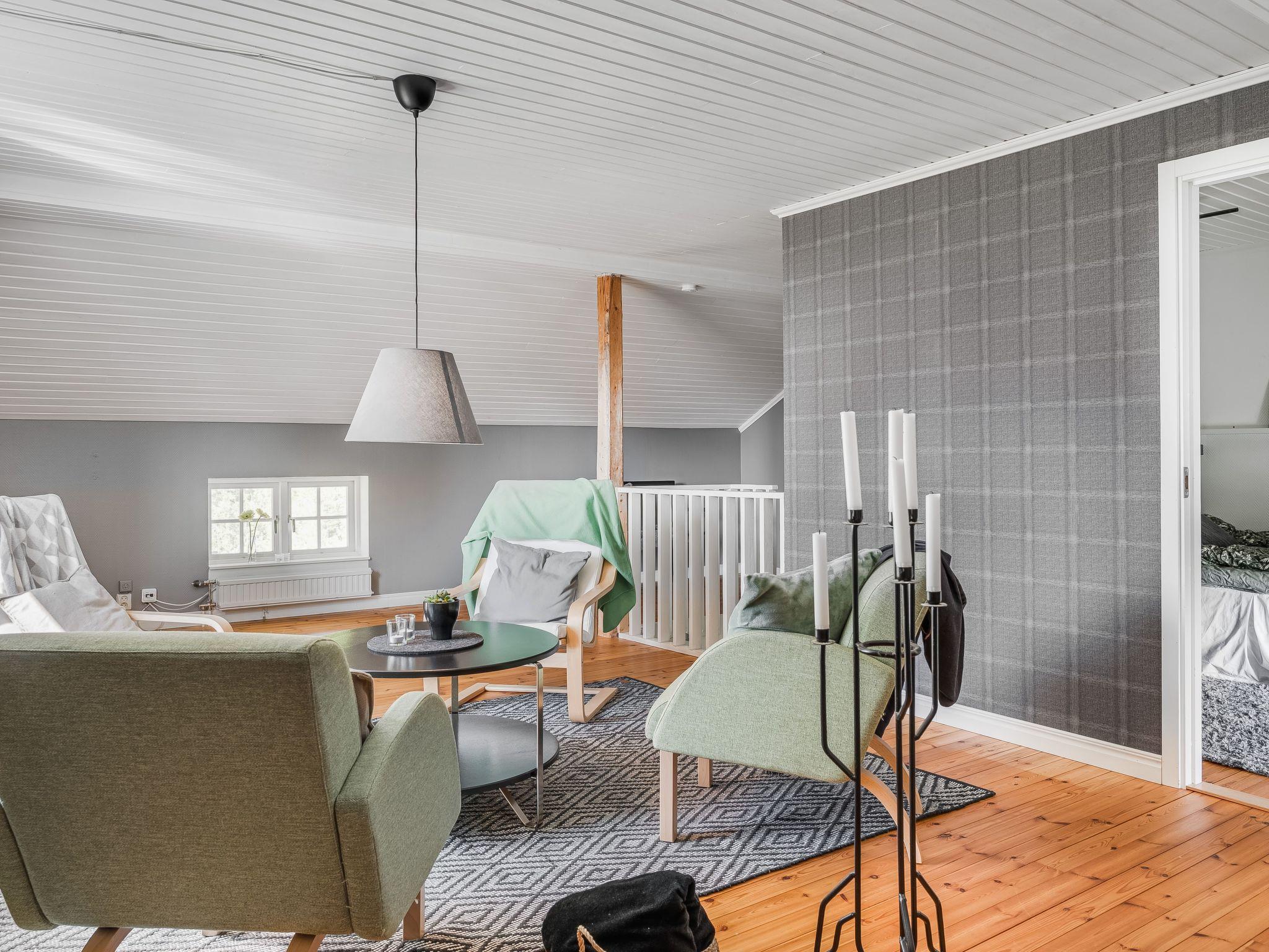 Very beautiful house "Flugebacken", 2 storeys, built in 1900, renovated in 2018. Property composed of main house and outbuilding 4 km from the centre of Sandhem, 4 km from the lake. Private: property 2'000 m2, garden lawn and trees. Patio, terrace, garden furniture, parking (for 4 cars) at the house. Carport. Grocery 4 km, bus stop 3.3 km, bathing lake "Sandhemssjön" 4 km. Golf course (18 hole) 10 km, walking paths from the house 2 km. Well-known ski regions can easily be reached: Mullsjö alpin 15 km.