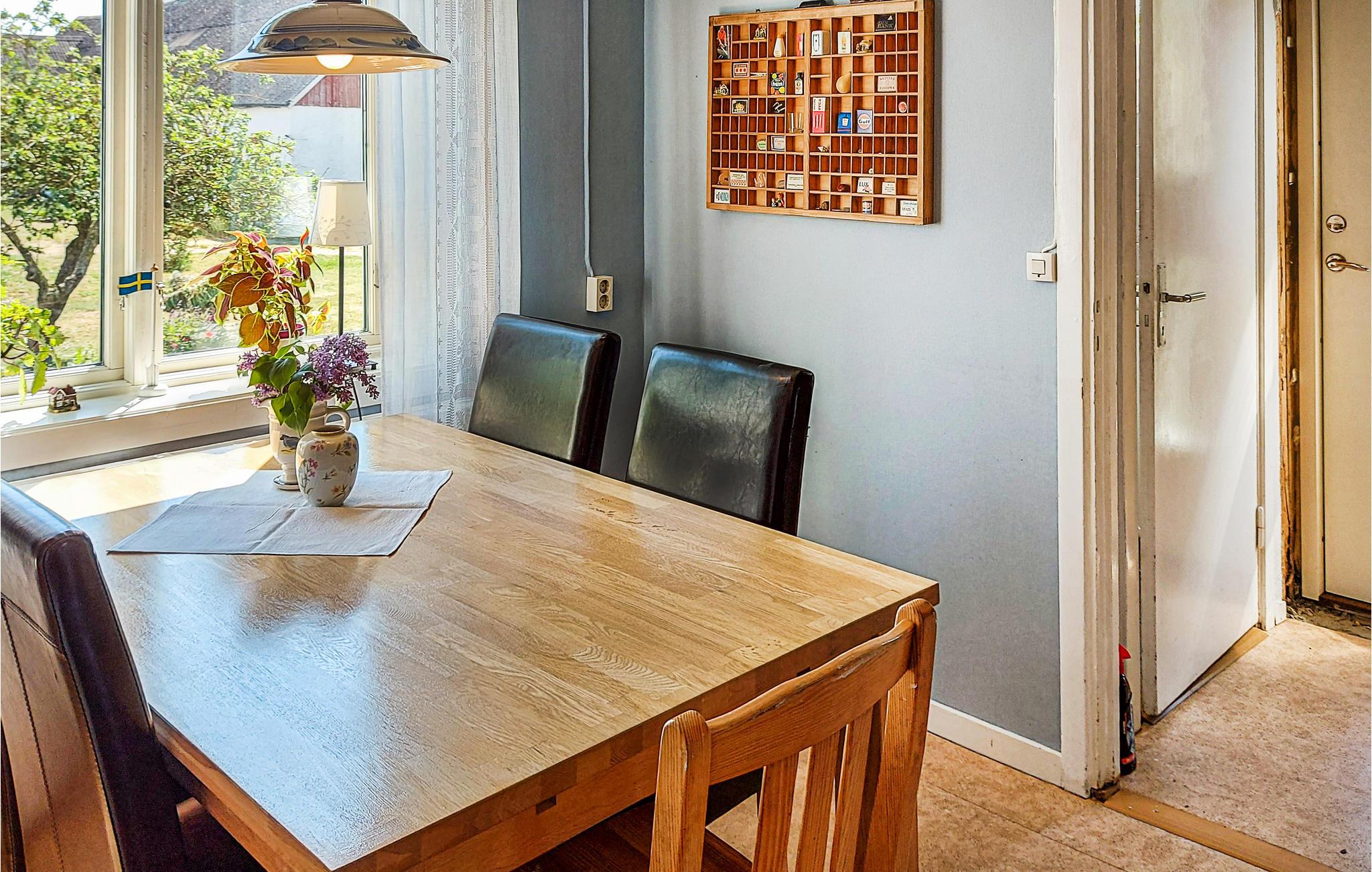 Hvis I har lyst til en tur, kan I besøge det nærliggende Alvaret og flere gamle slotte. Der er gode golfbaner inden for 8 km. Den nærmeste butik ligger 8 km væk, og der ligger en restaurant lidt over 2 km fra huset. Efter cirka 800 m når I havet.