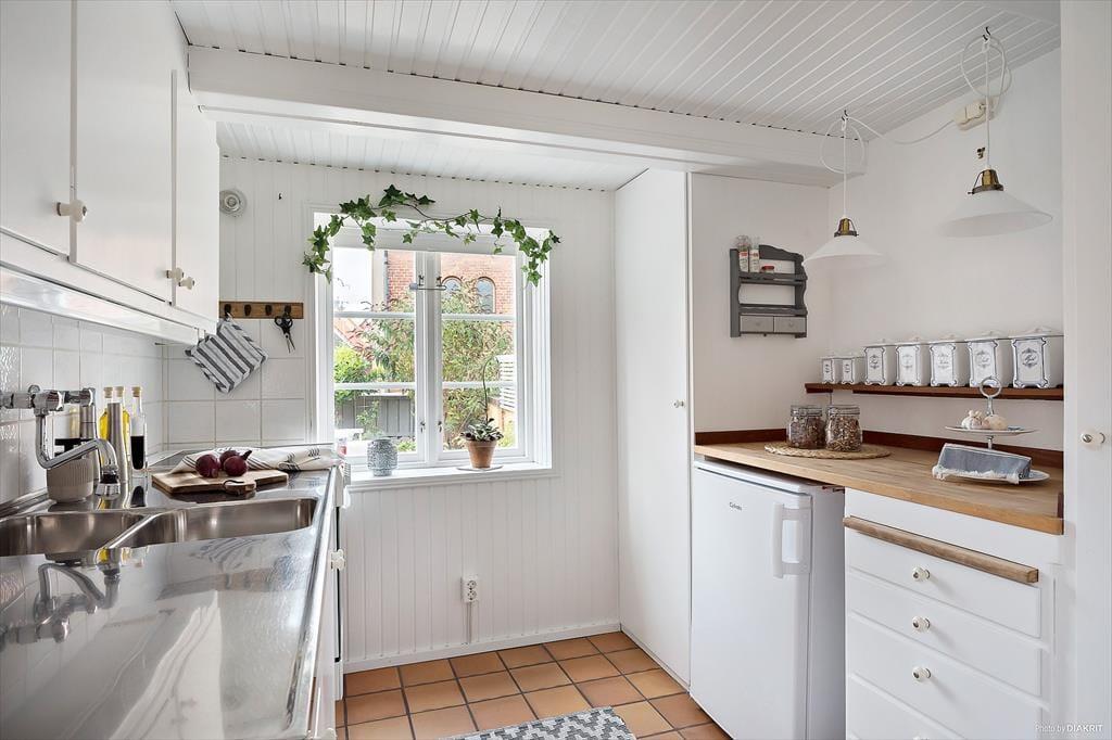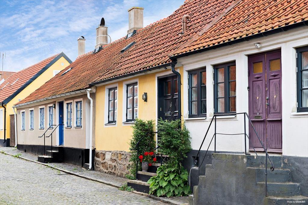 I hjertet af den maleriske havneby Simrishamn på Skånes østkyst ligger dette charmerende historiske rækkehus med en hundevenlig indhegnet terrassehave. Havnen og bymidten, der om sommeren summer af liv med turistinformation, butikker, caféer og restauranter, ligger kun en kort gåtur væk. Sandstranden, der starter nord for lystbådehavnen, ligger en behagelig gåtur på 600 meter, ligesom den nærmeste af Simrishamns forskellige supermarkeder. Det omkringliggende område gennemskæres også af markerede vandrestier.