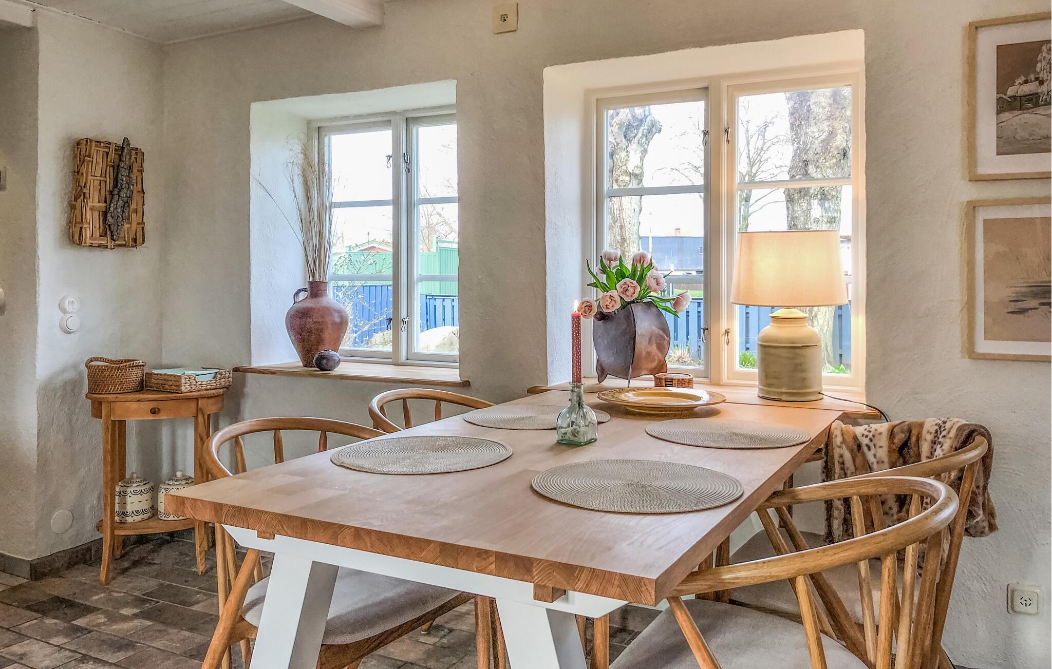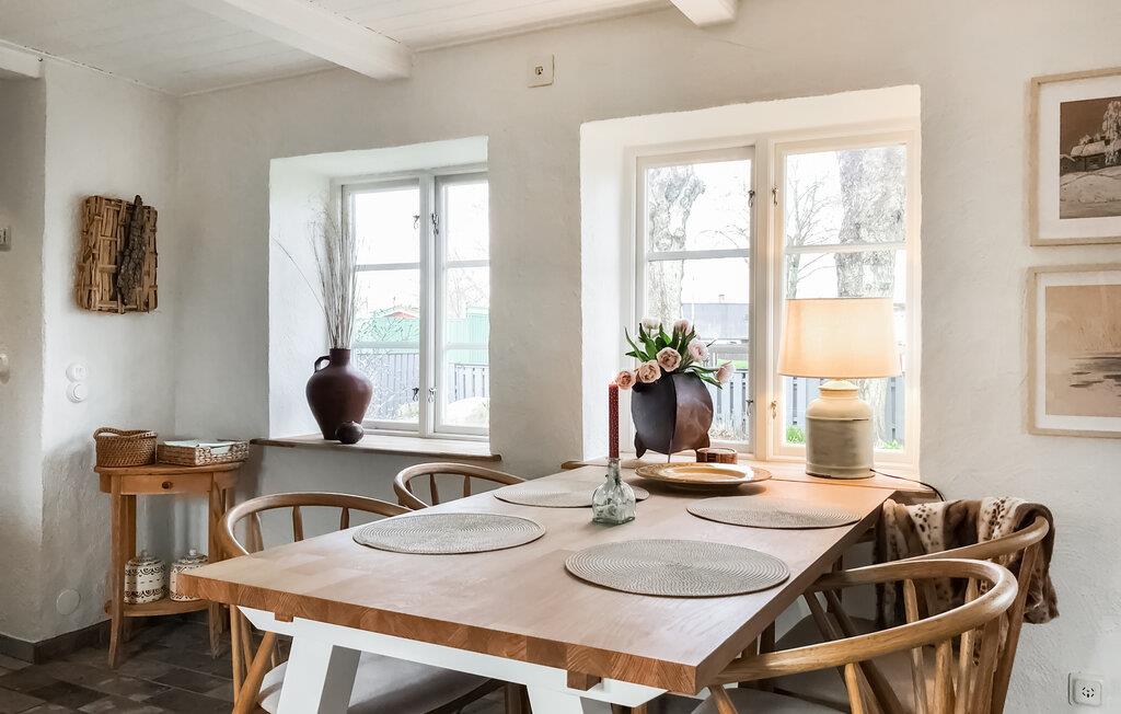 Tag familien under armen og rejs til Simrishamn, hvor dette nydelige hus danner rammen om en ferie med mange skønne udflugter i Skåne. Indretningen fremtræder yderst pænt og hjemligt med gode møbler og en brændeovn, der giver varme og det helt rette lydtapet på en gråvejrsdag, og som gør det ekstra hyggeligt at nyde en lækker aftensmad ved spisebordet. Senere kan I trække over i stuen med brætspil, hver jeres bog eller en god film, mens I lægger planer for de kommende dage.
