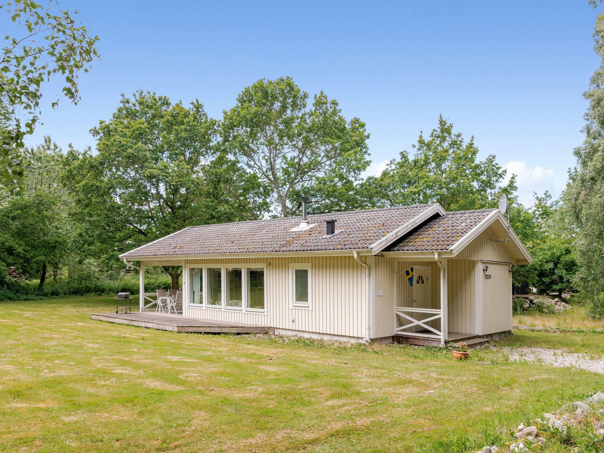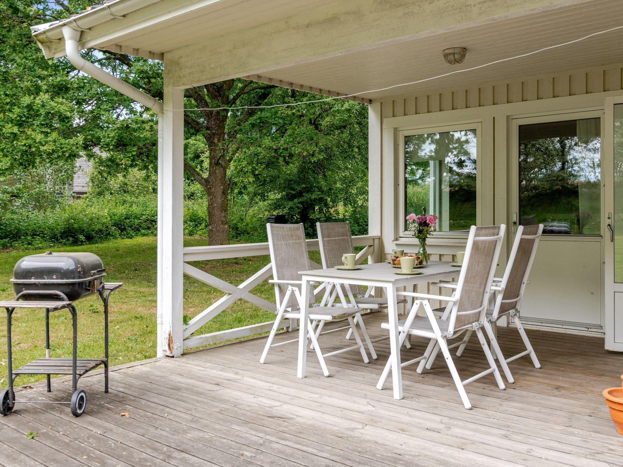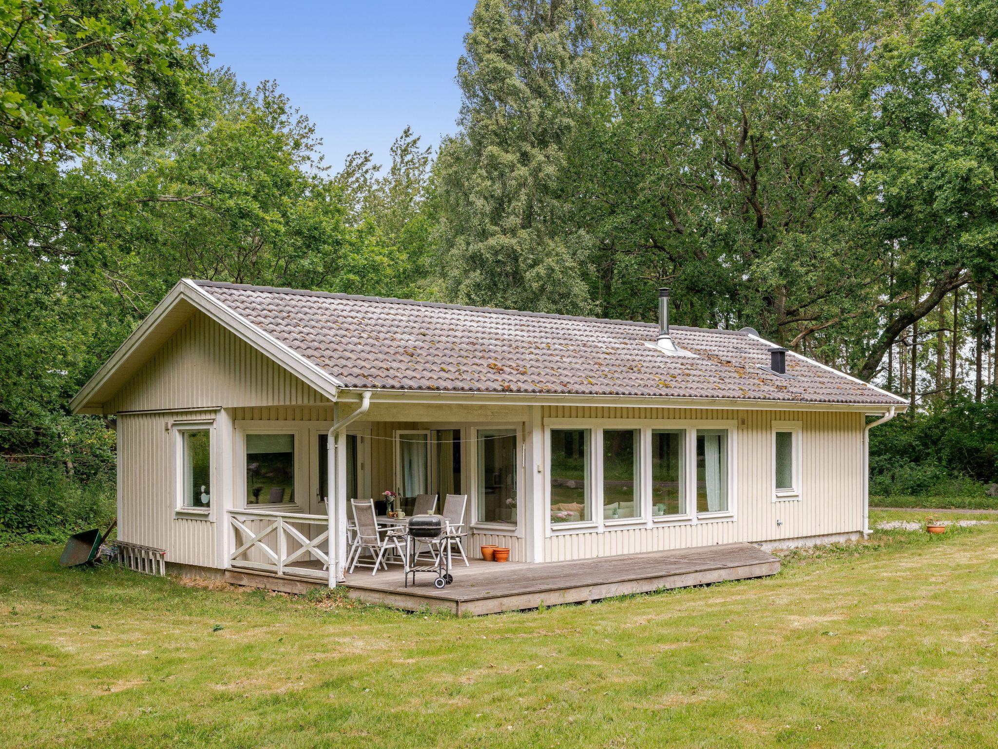 "Gyllebo", 4-room house 70 m2. Cosy furnishings: living room with Scandinavian wood stove and TV. Exit to the garden, to the terrace. 1 room with 1 bed. 1 room with 1 bed. 1 room with 1 double bed. Open kitchen (4 hot plates, oven, dishwasher, toaster, kettle, microwave, freezer, electric coffee machine). Exit to the garden. Shower/WC. Heating. Wooden floors. Terrace furniture, barbecue. Facilities: washing machine. Please note: non-smoking house.