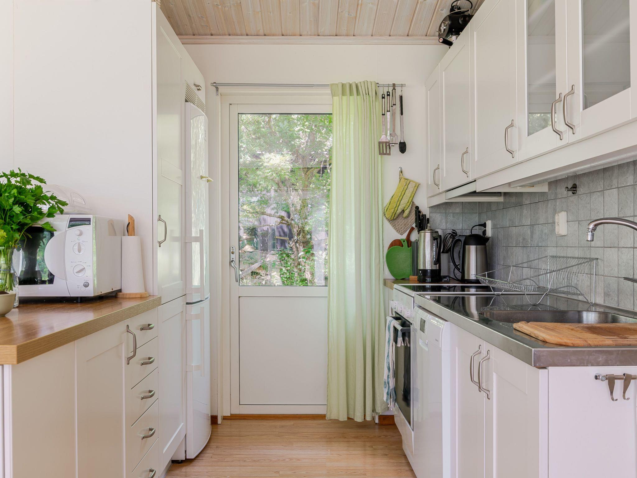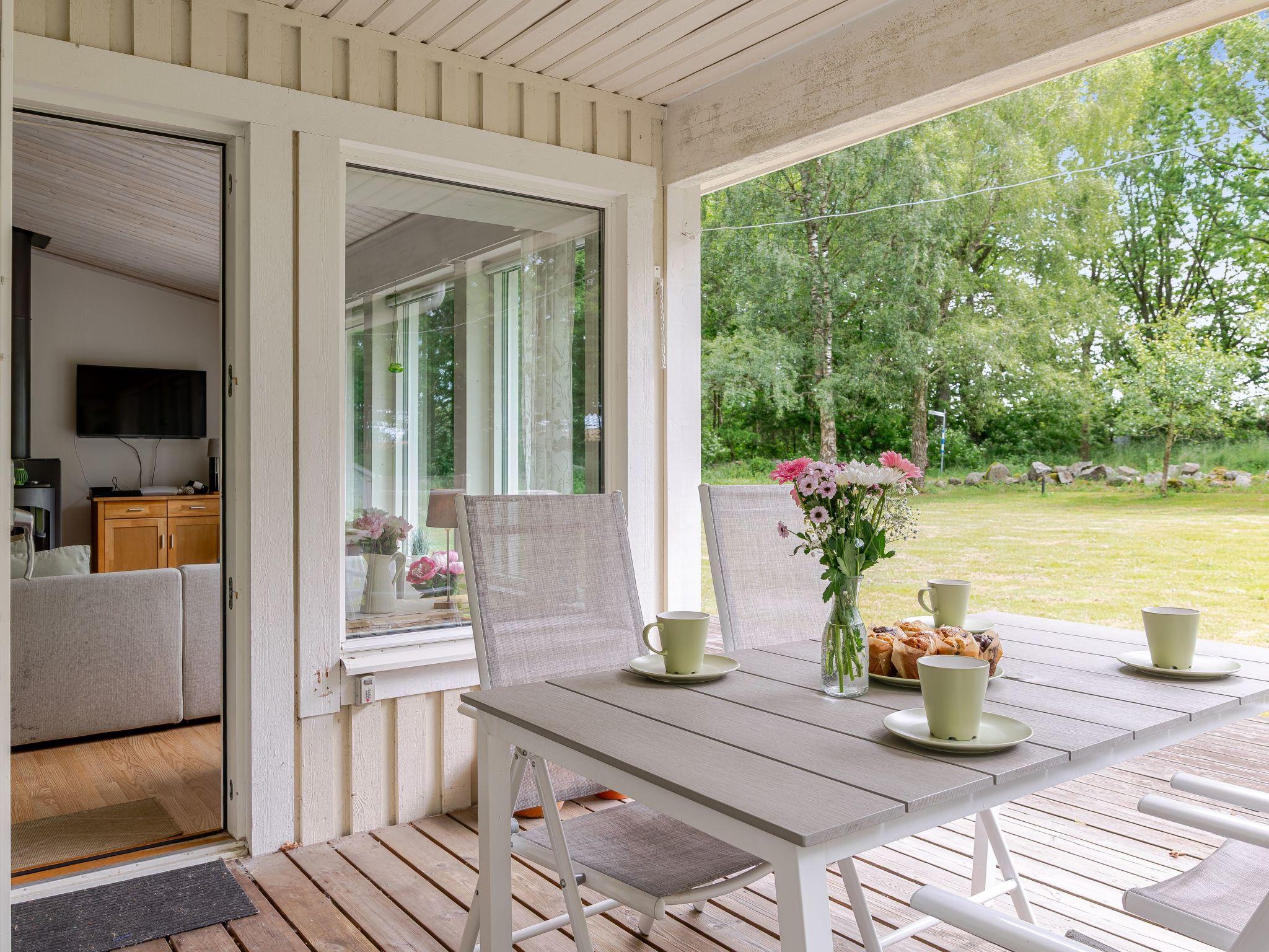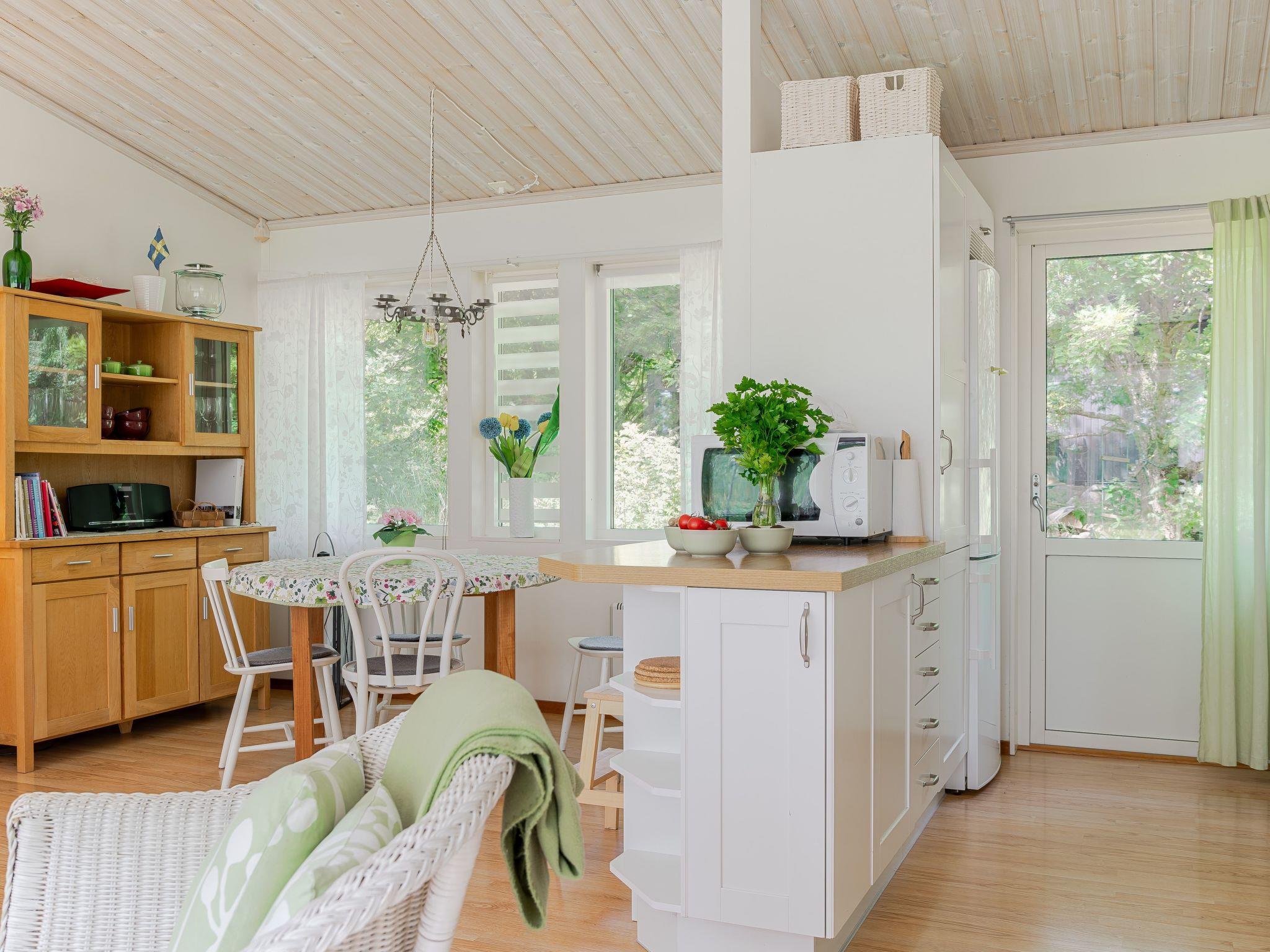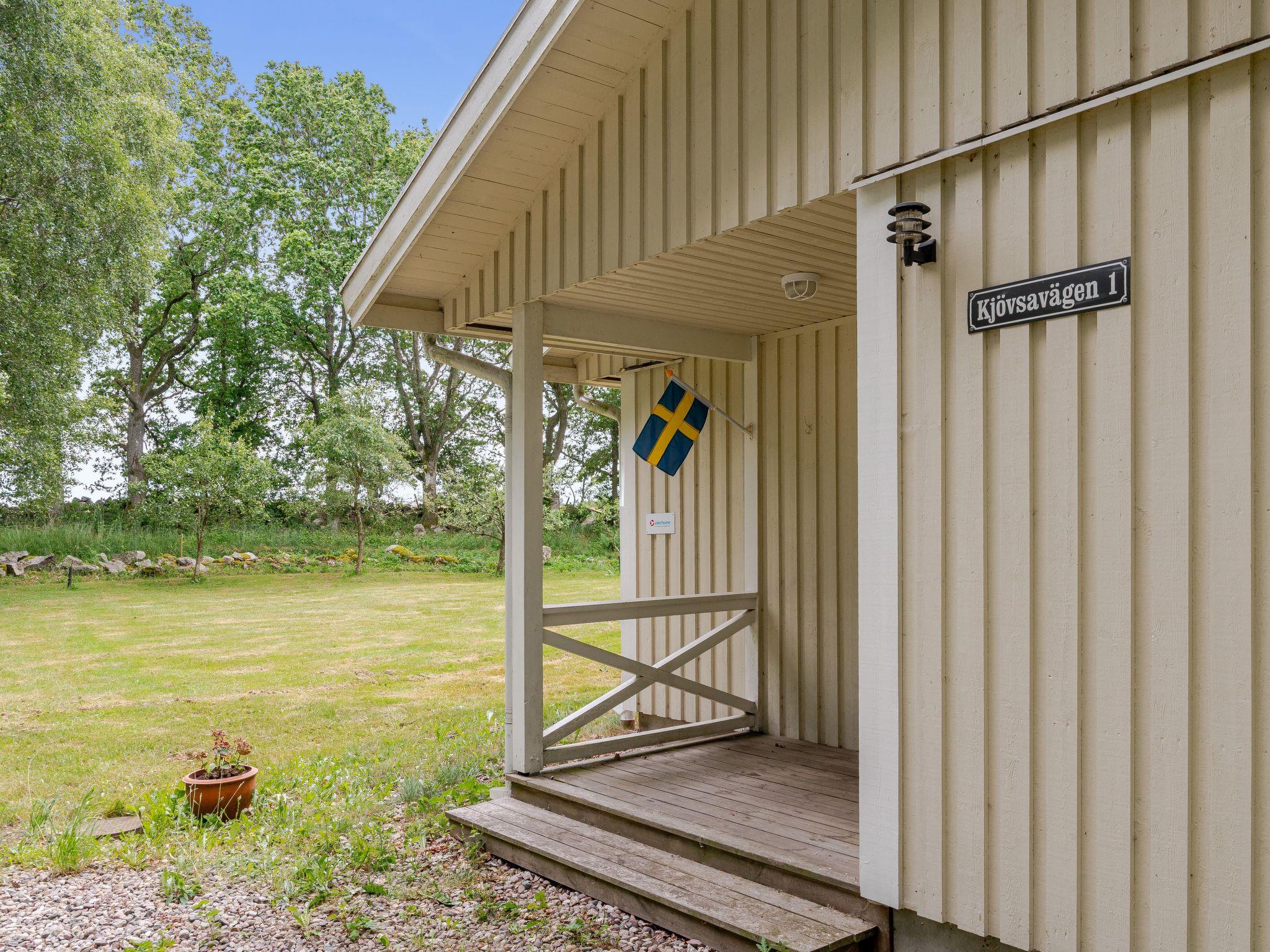 "Gyllebo", 4-room house 70 m2. Cosy furnishings: living room with Scandinavian wood stove and TV. Exit to the garden, to the terrace. 1 room with 1 bed. 1 room with 1 bed. 1 room with 1 double bed. Open kitchen (4 hot plates, oven, dishwasher, toaster, kettle, microwave, freezer, electric coffee machine). Exit to the garden. Shower/WC. Heating. Wooden floors. Terrace furniture, barbecue. Facilities: washing machine. Please note: non-smoking house.