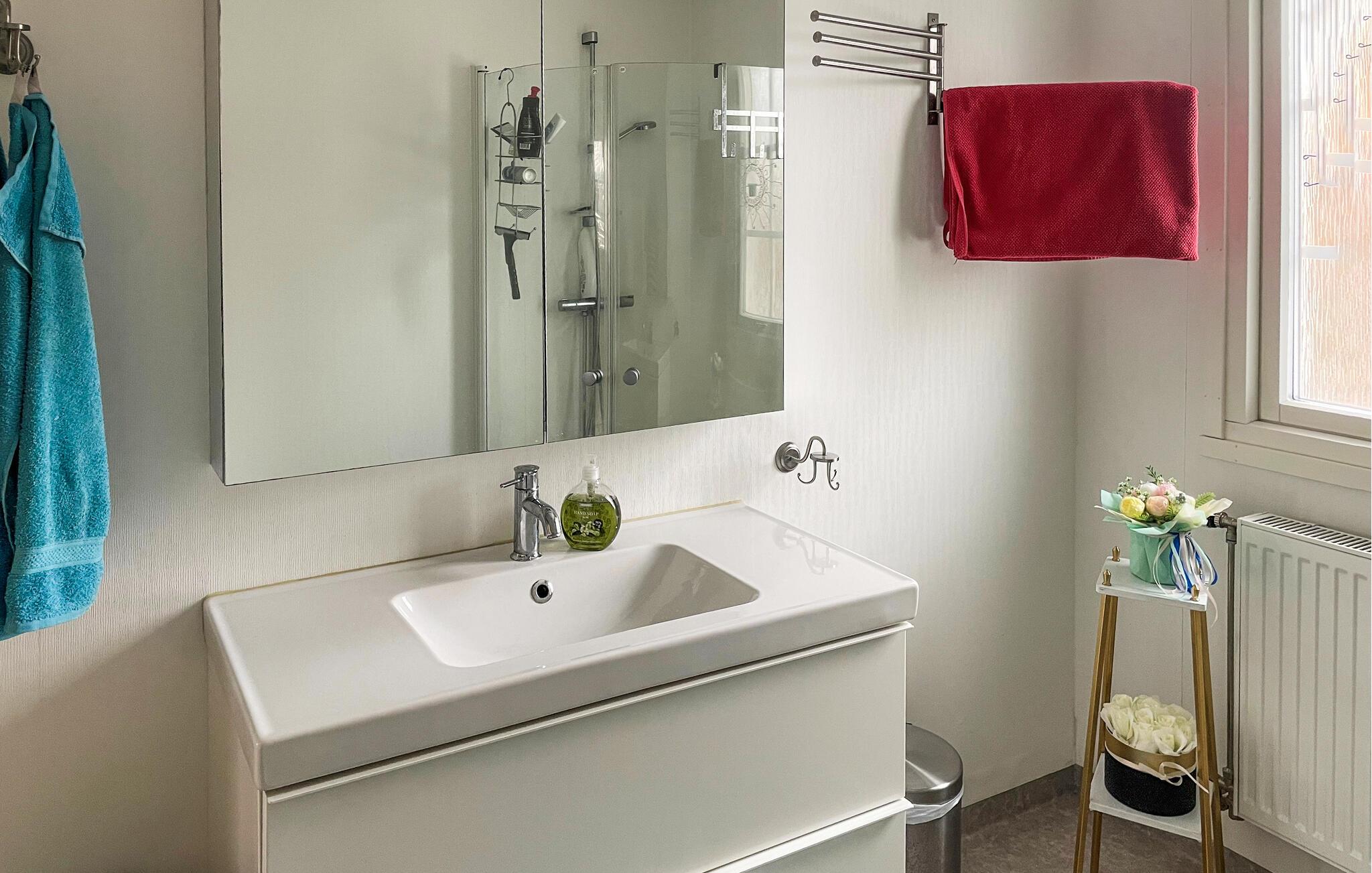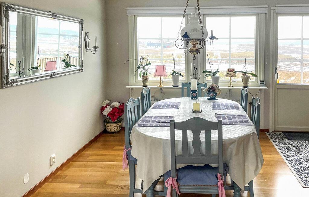 Dette hus kombinerer harmonisk hygge og komfort. Rustikke møbler, et komfortabelt siddeområde og blomstermønstre skaber en atmosfære, der er både forfriskende og afslappende. Nyd den storslåede udsigt over det omkringliggende landskab, slap af med en velduftende kop kaffe eller tilbring en hyggelig filmaften sammen.