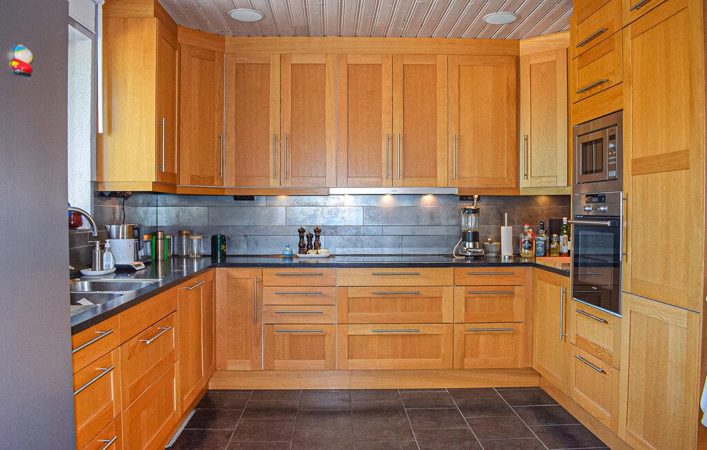Dette feriehus tilbyder en skøn oase til afslappende dage med familien. Tilbered lækre retter med friske råvarer fra gårdbutikken, og glæd jer til hyggelige måltider ved spisebordet. Tænd den norske brændeovn, og lyt til den knitrende ild, mens I læser en bog i sofaen eller hold en sjov spilleaften.