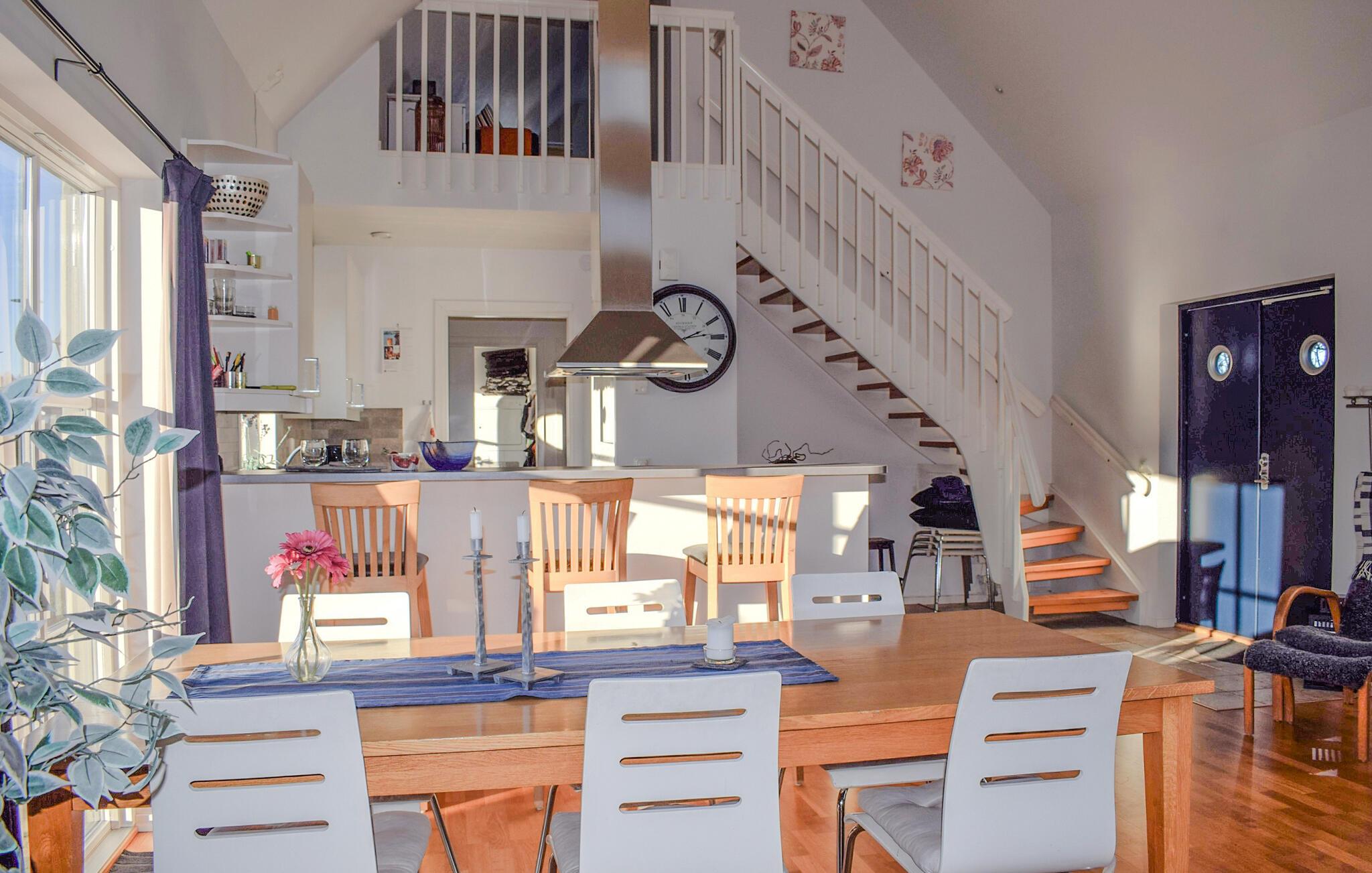 Velkommen til dette lyse hus i Vik. Nyd husets charmerende karakter, der udstråler lys og varme. Læn jer tilbage i den rummelige opholdsstue, der byder på en luftig atmosfære med højt til loftet, store vinduer og harmoniske farveskemaer. Brug det komfortable sofahjørne til stille læsning eller nyd måltider sammen ved det smukke spisebord. Tilbered jeres måltider i det moderne køkken.