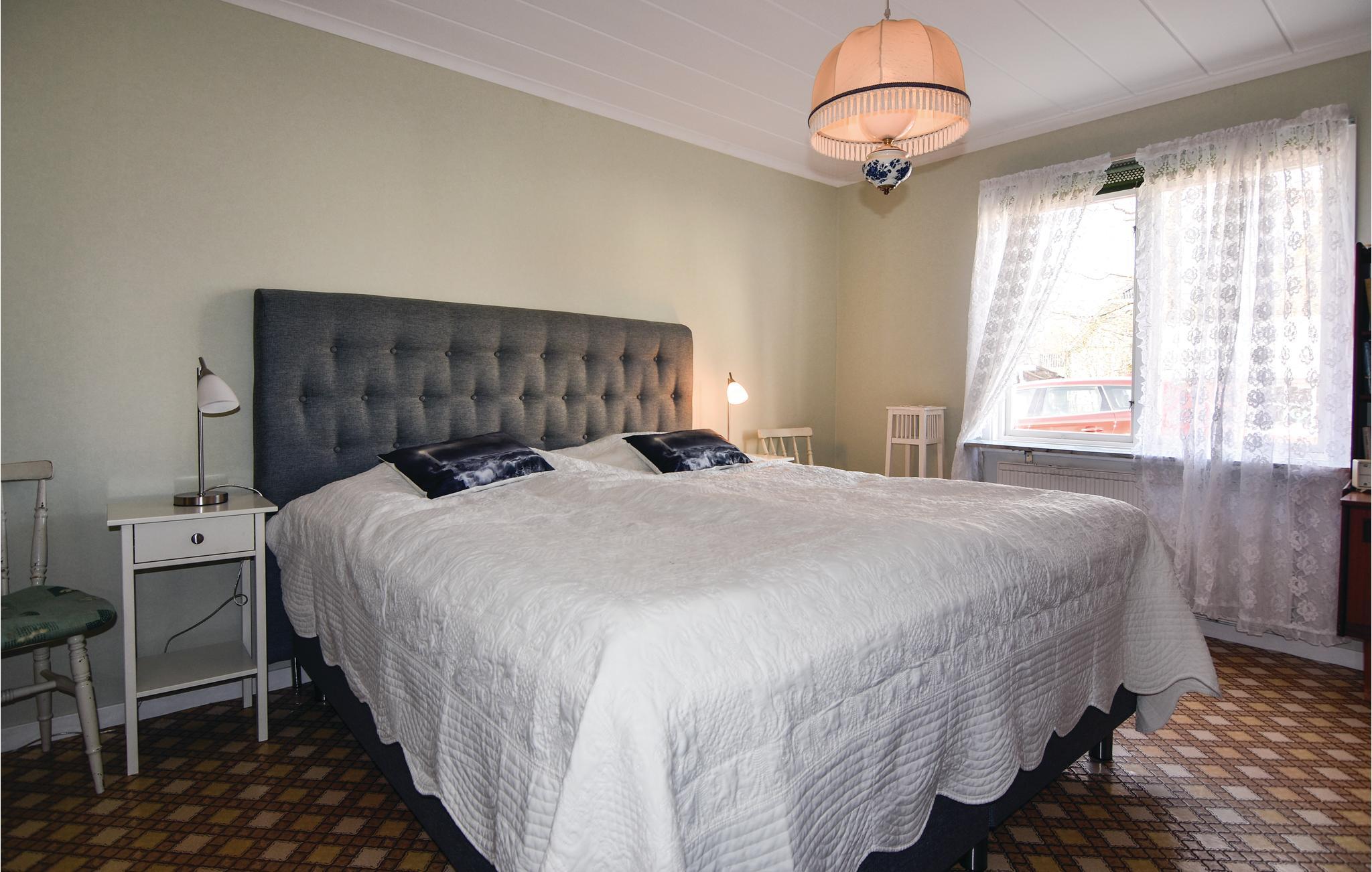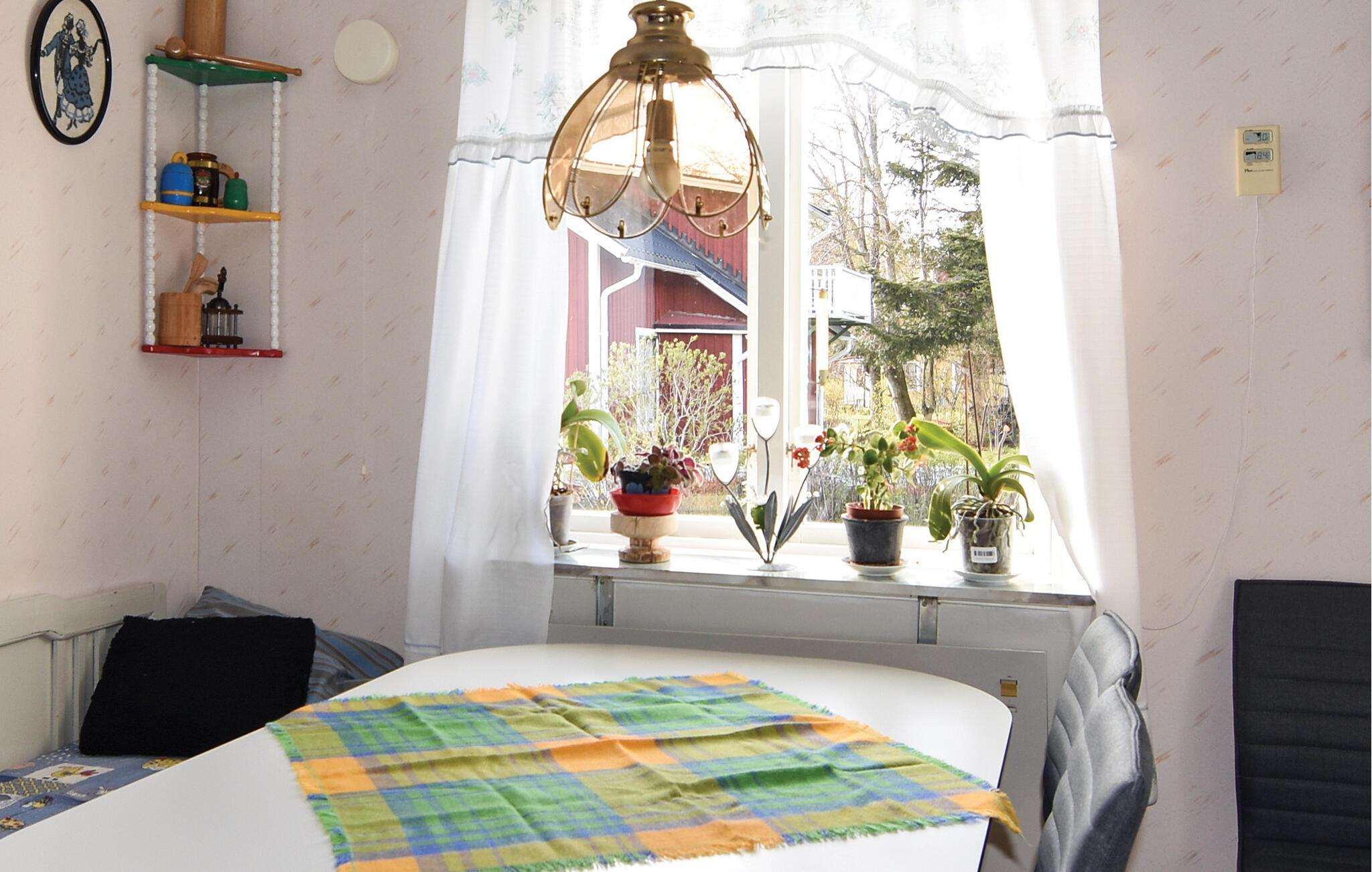 I denne lille rolige by med pittoreske småhuse ligger jeres feriehus på en dejlig stor grund. Her er også et hyggeligt havnemiljø, og I kan leje cykler og tage den flotte tur langs kanalen. I havnen er der både restaurant og café, prøv at købe den røgede fisk fanget i Vänern.